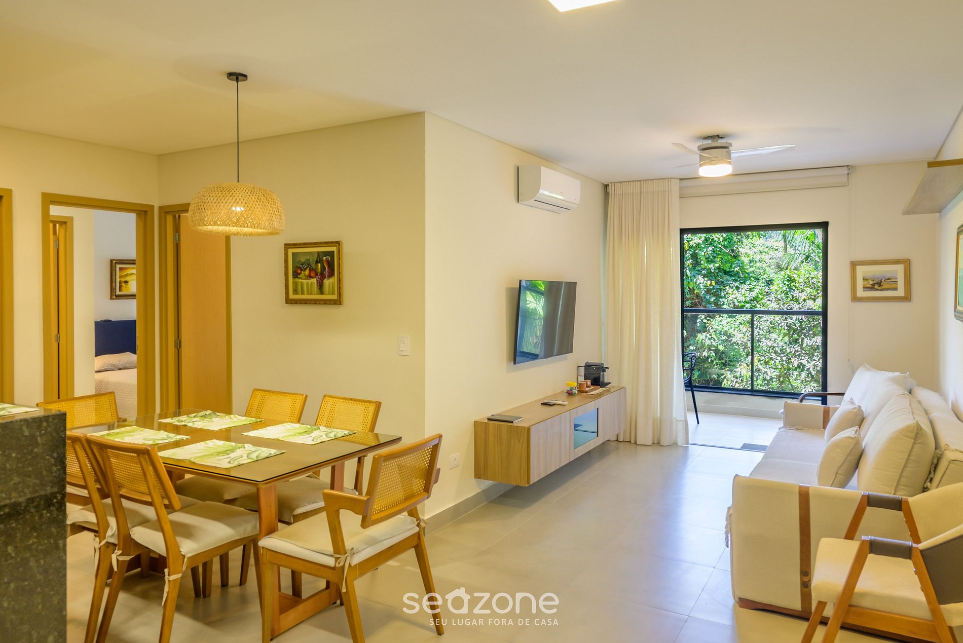 - Sala de estar con sofá cama doble, Smart TV, ventilador de techo y aire acondicionado;