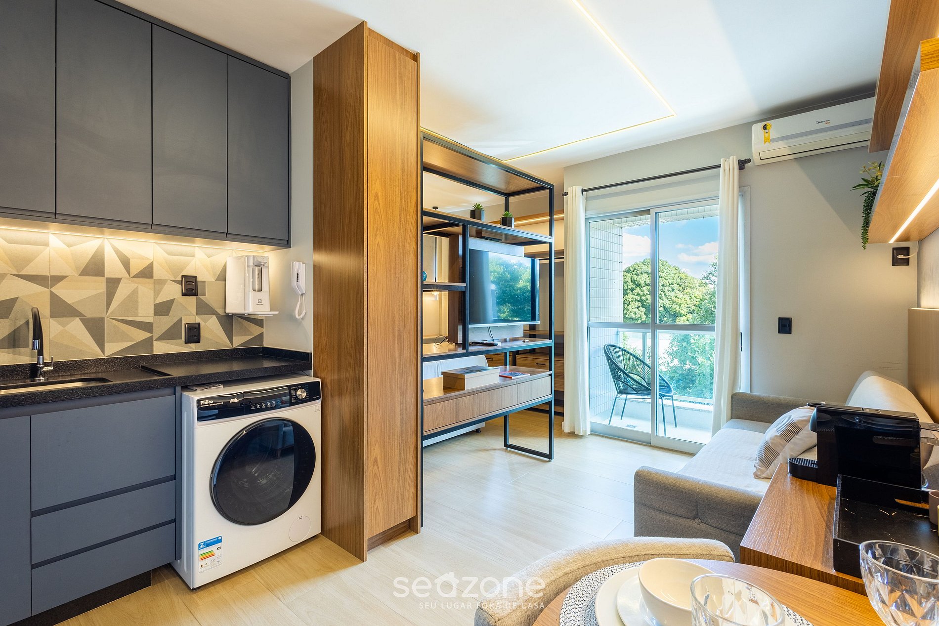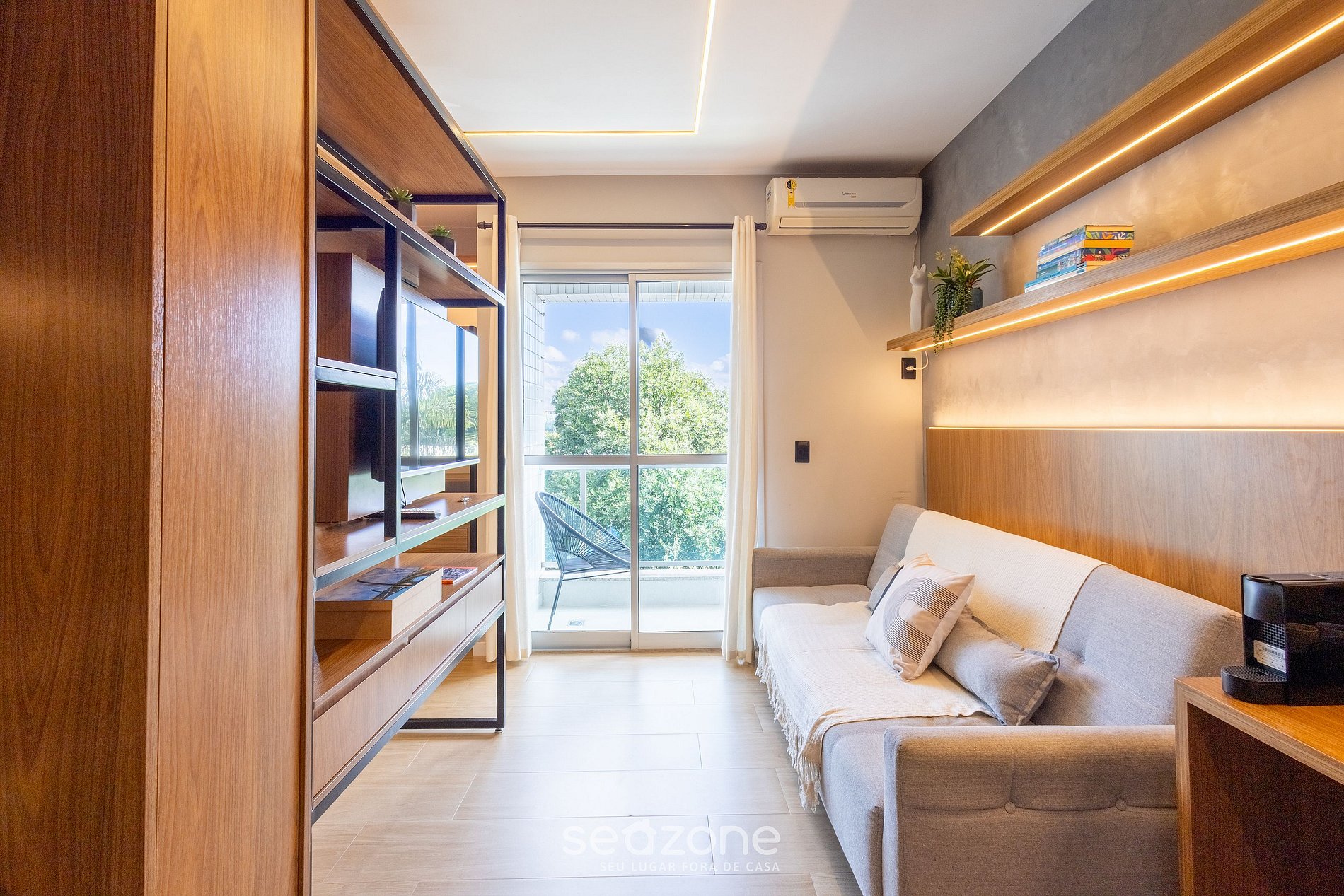 - Espacio con sofá y Smart TV;
