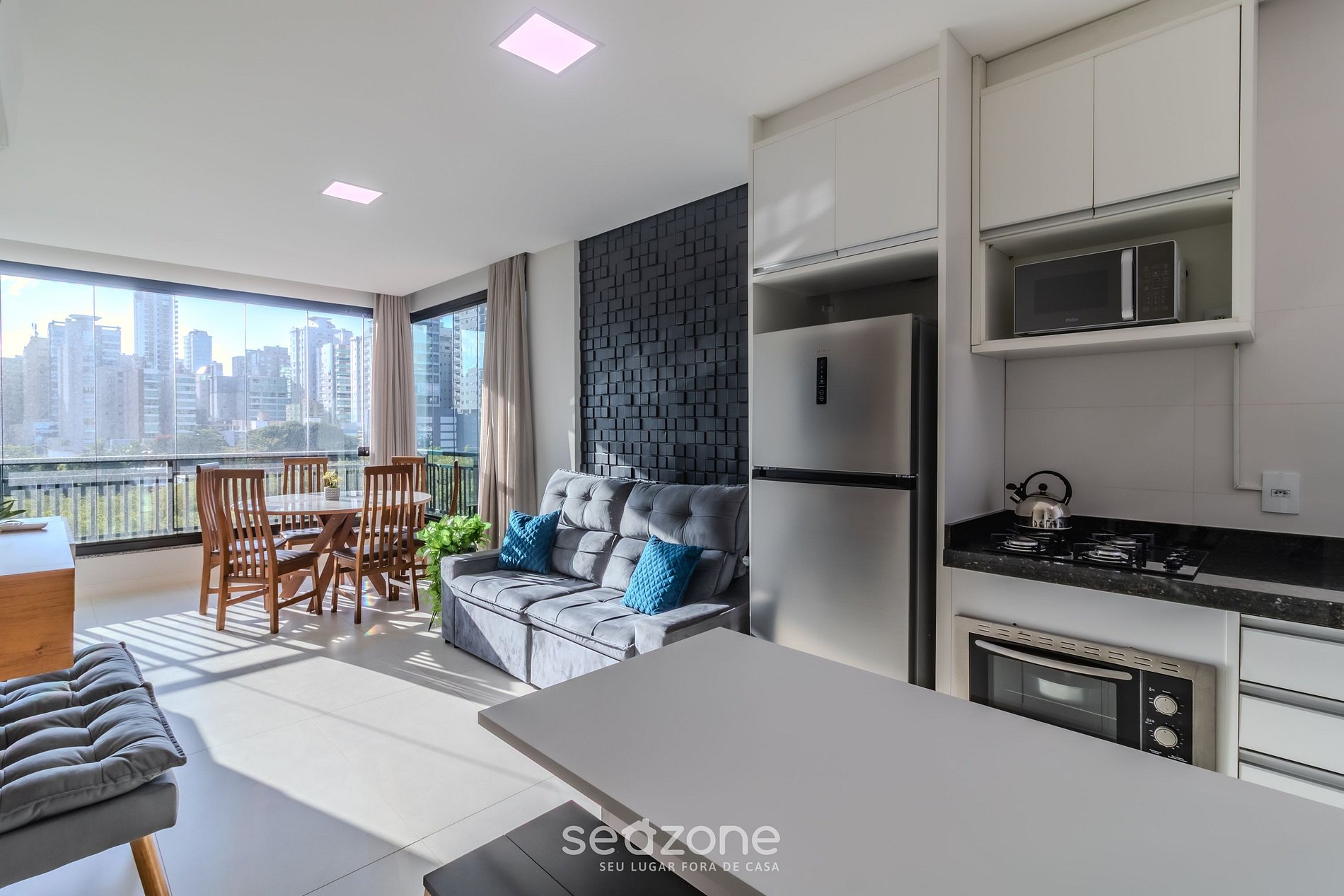 - Cocina totalmente equipada con refrigerador, estufa de gas, horno eléctrico, airfryer, microondas, sandwichera, kit de café (portafiltros, termo), hervidor, licuadora, copas de vino, ollas, platos y utensilios;