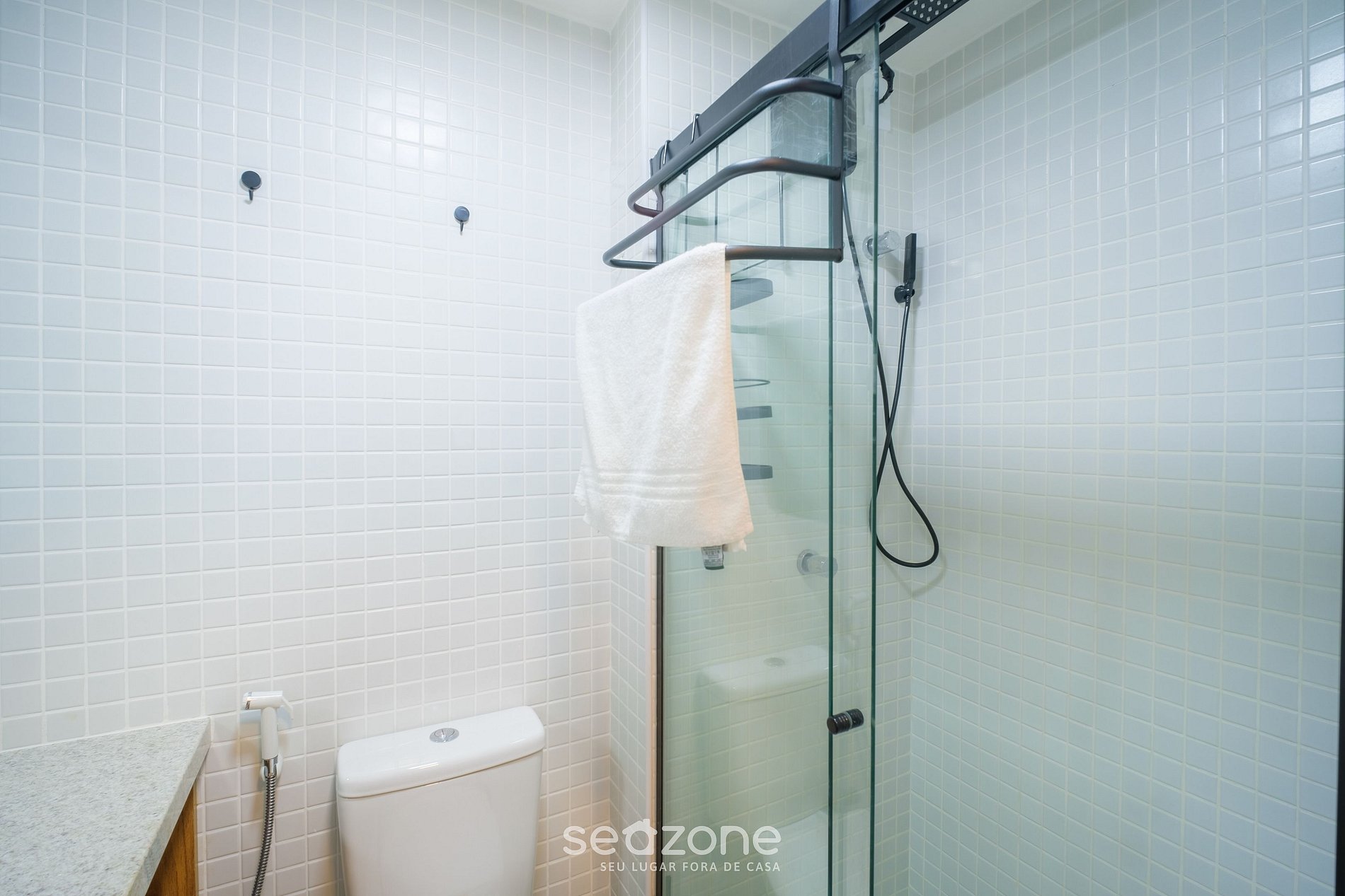 A solo 300 metros de la playa, disfrutará de una vista panorámica de la ciudad, además de un ambiente moderno y completo, con cama matrimonial, Smart TV, aire acondicionado y cocina equipada. El edificio también cuenta con áreas comunes como piscina en la azotea, gimnasio y coworking.