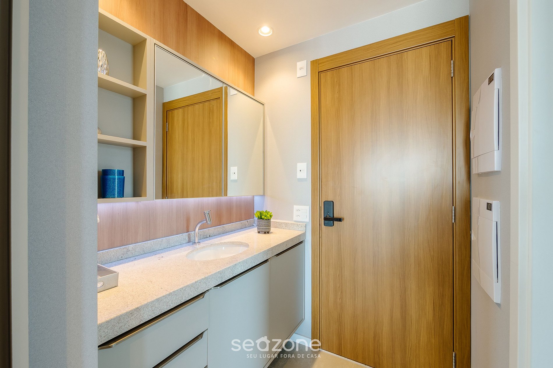 Este studio, ubicado en una región estratégica, ofrece fácil acceso a puntos turísticos y a la playa. Equipado con cama doble, smart TV, sofá, cocina completa, Wi-Fi y una vista increíble de la ciudad, es el lugar perfecto para tu estadía. Disfruta de las áreas comunes, como la piscina, el gimnasio y la lavandería.