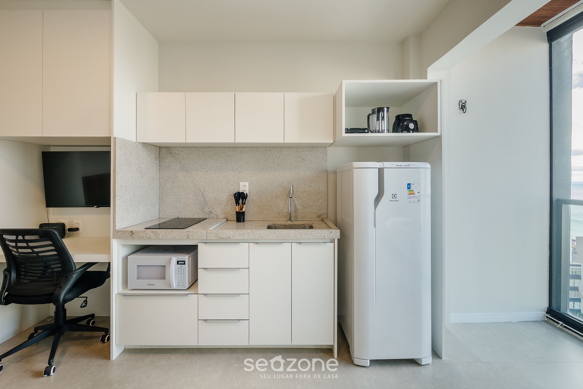 - Cocina completa con nevera, cocina cooktop (inducción), microondas, sandwichera, Kit de café (soporte para filtro, termo), licuadora, copas de vino, ollas, vajilla y utensilios;