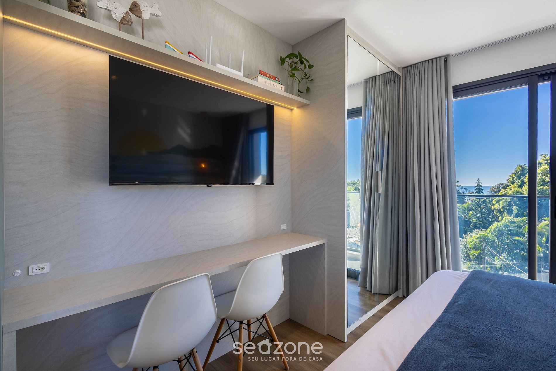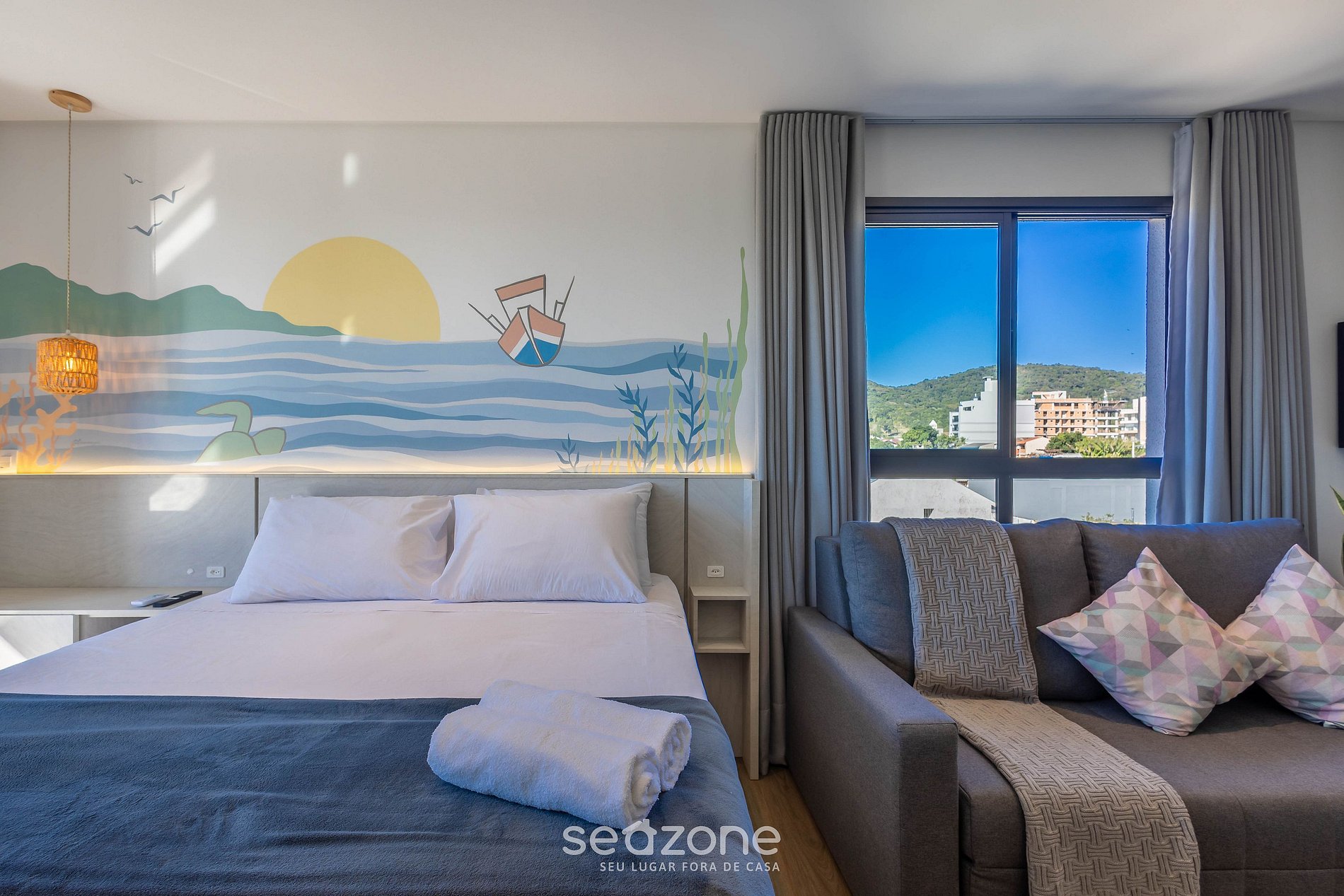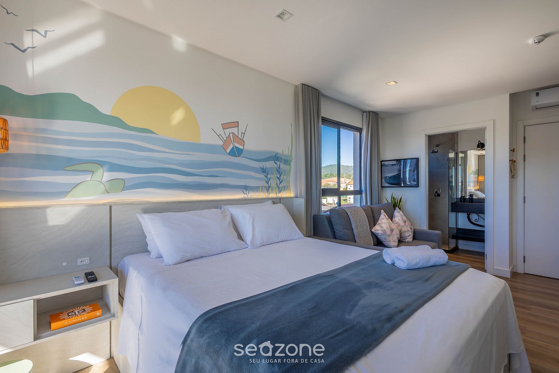 Hospédese en este moderno estudio, completo y con una encantadora vista al mar. Confort garantizado con cama queen, aire acondicionado frío/calor y sofá cama para hasta dos personas. La ventana lateral proporciona excelente iluminación natural ideal para relajarse o trabajar. En la azotea, disfrute de la piscina y de la vista impresionante. A solo 12 min caminando de Beto Carrero, ¡este es el lugar perfecto para crear momentos inolvidables en familia!