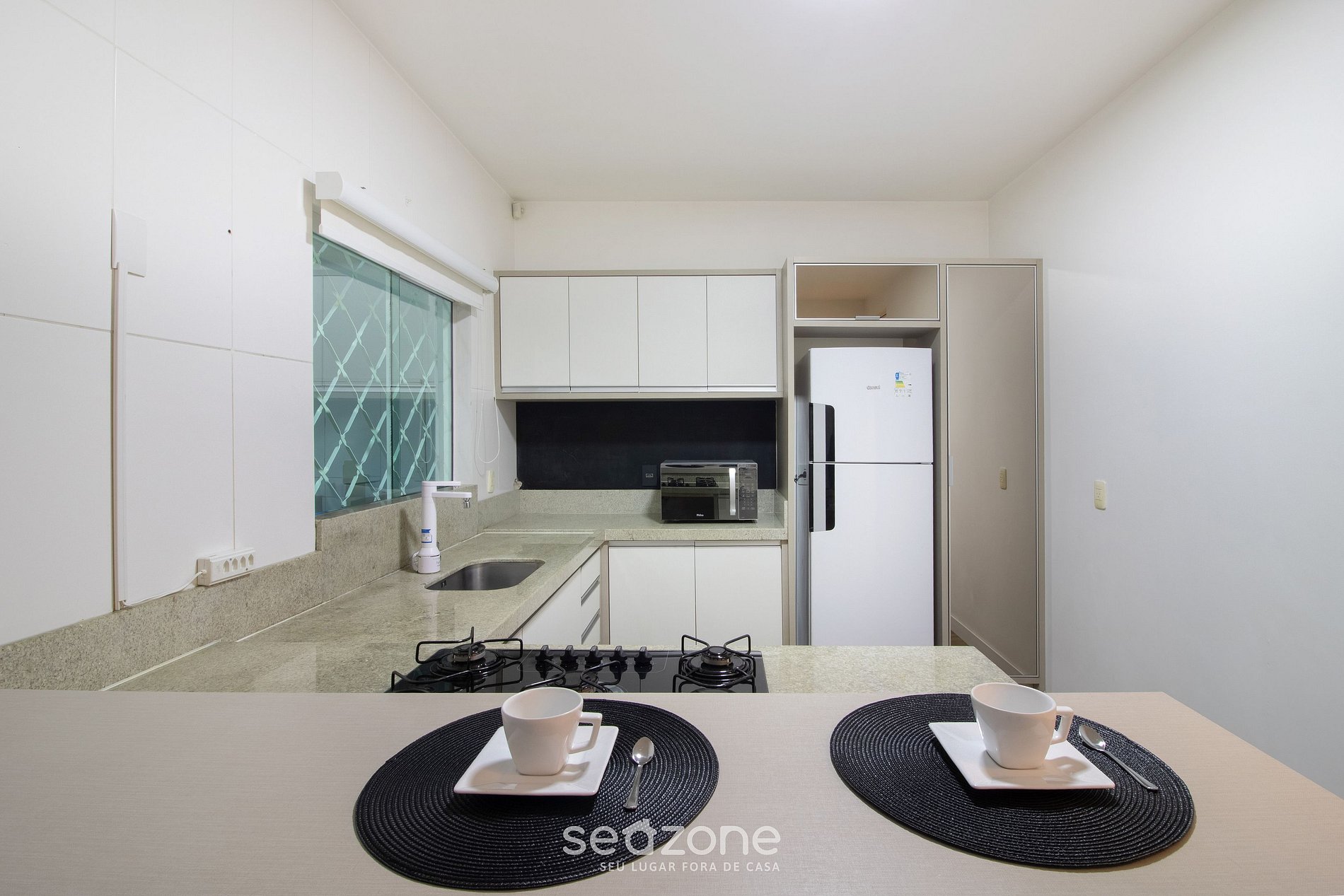 - Cocina completa con refrigerador, estufa de gas, microondas, sandwichera, cafetera eléctrica, hervidor eléctrico, licuadora, copas de vino, ollas, platos y utensilios;