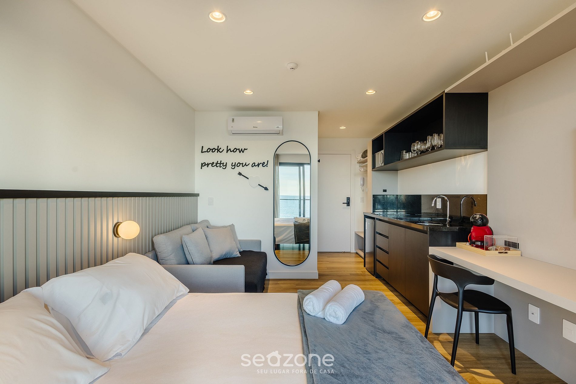 Descubra lo mejor de Penha alojándose en nuestros modernos, funcionales y acogedores estudios, ubicados en el encantador barrio de Armação. Prepárate para días de sol, aventura y relajación, con la Playa de Fortaleza a sólo 50 metros, perfecta para tus paseos matutinos y momentos de ocio junto al mar.