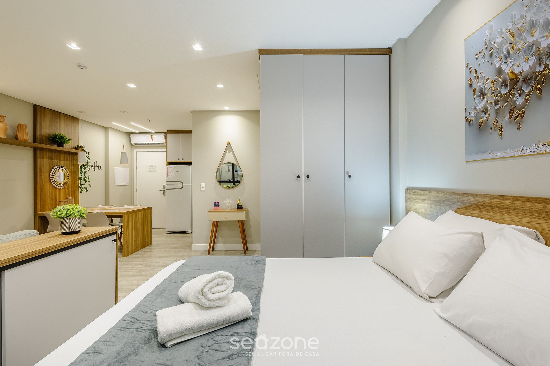 Este studio es la elección perfecta para quienes buscan confort y practicidad en una excelente ubicación en Meia Praia.