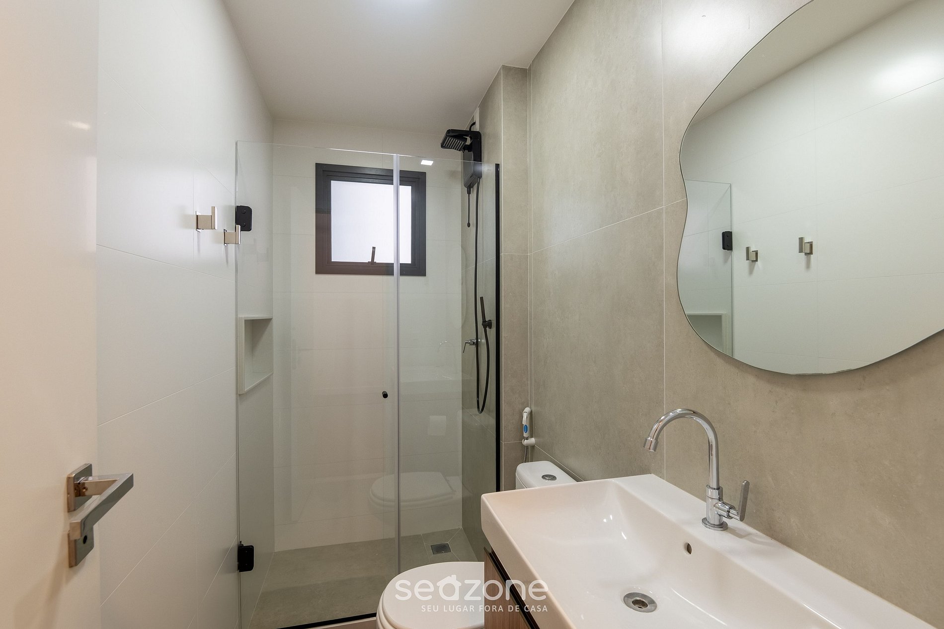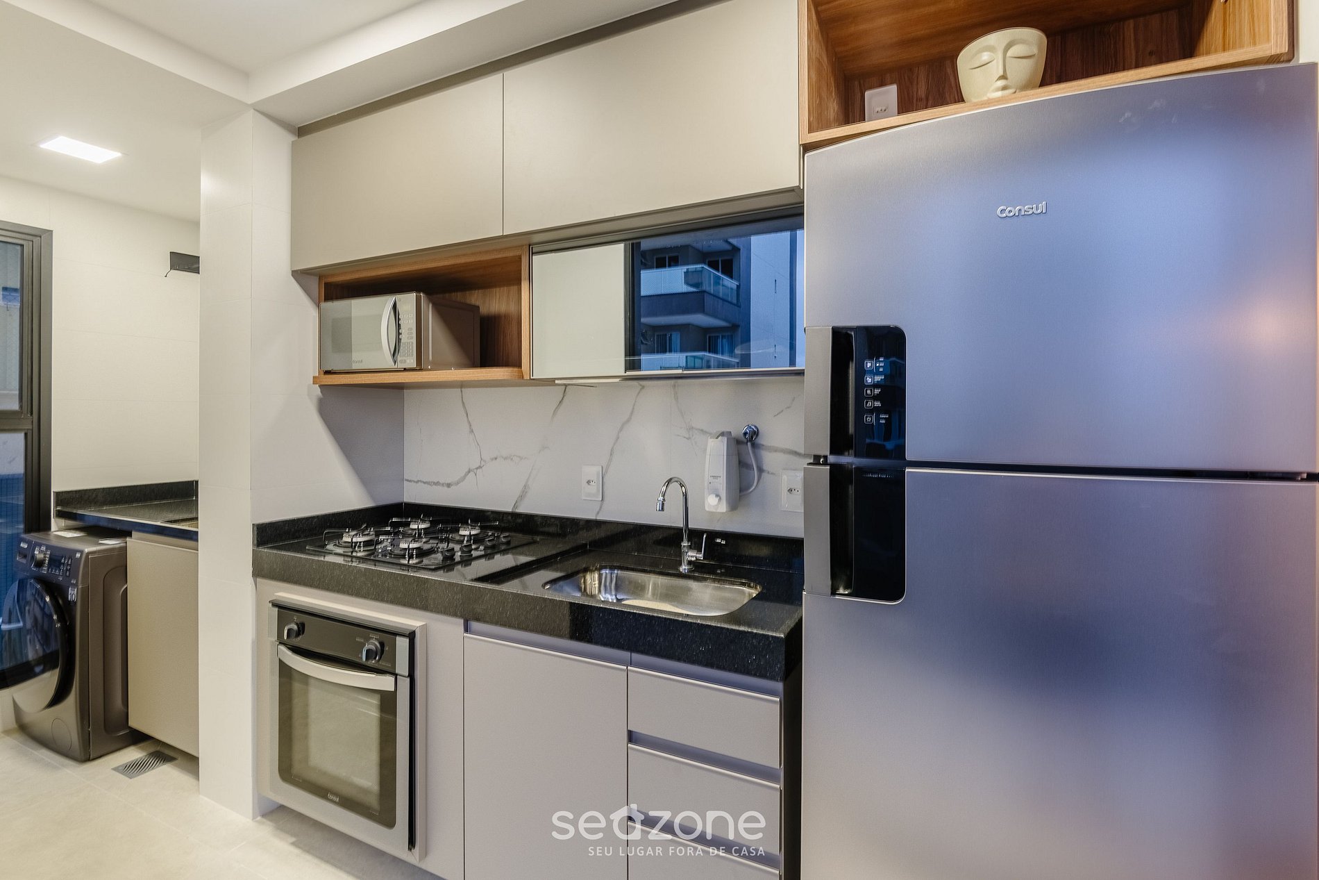 Apto con 2 habitaciones, una de ellas con suite, ambas con aire acondicionado. Sala con sofá-cama, Smart TV y Wi-Fi, además de una cocina totalmente equipada. Con una ubicación privilegiada a solo 300m de la playa, estarás cerca de los mejores restaurantes y tiendas del centro. Alojamiento ideal para quienes buscan calidad y practicidad.