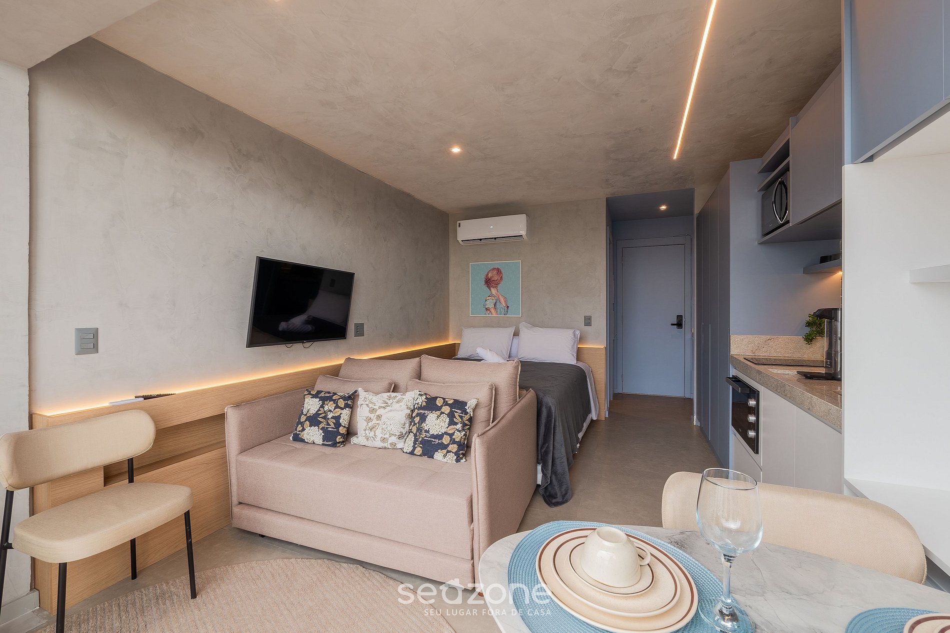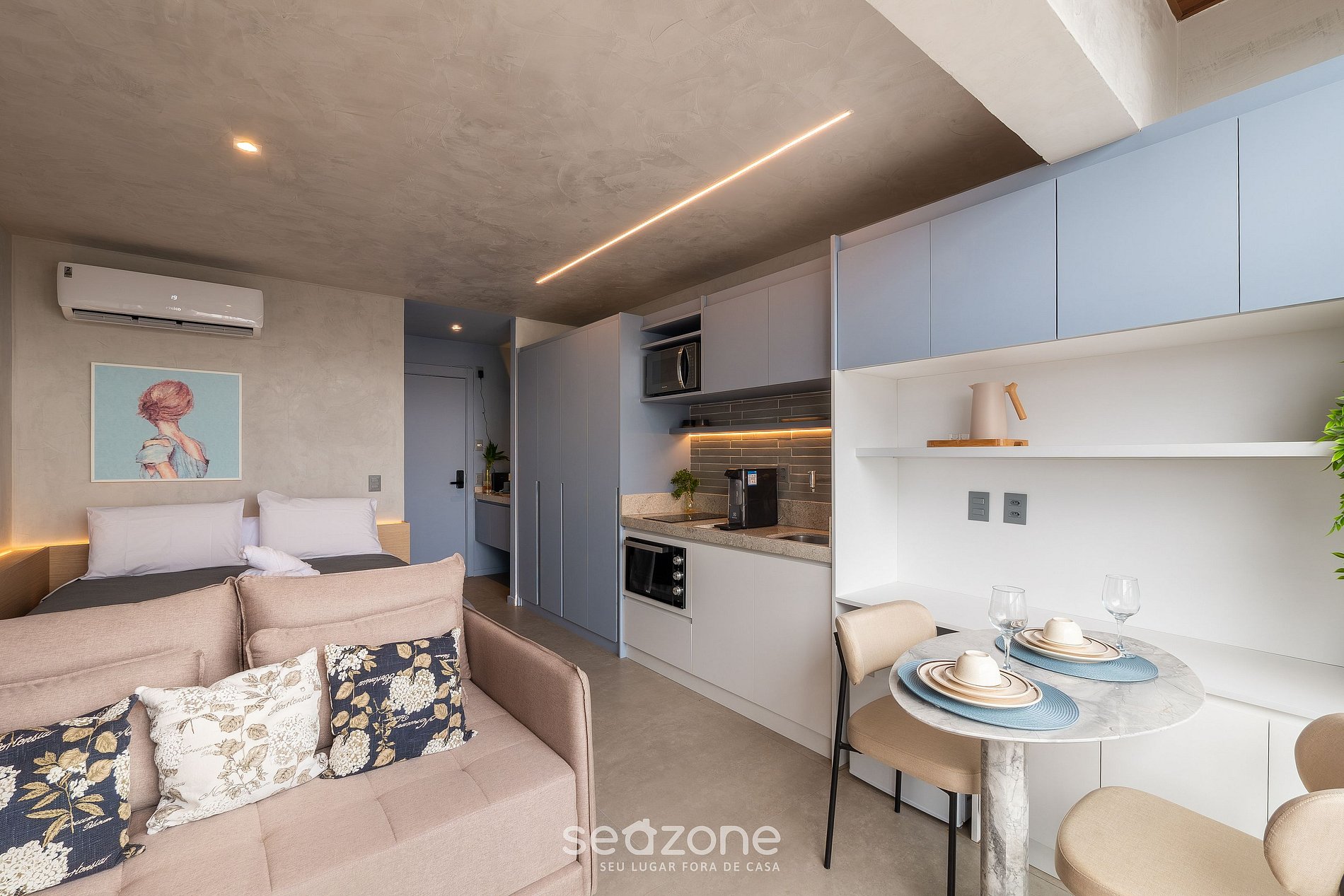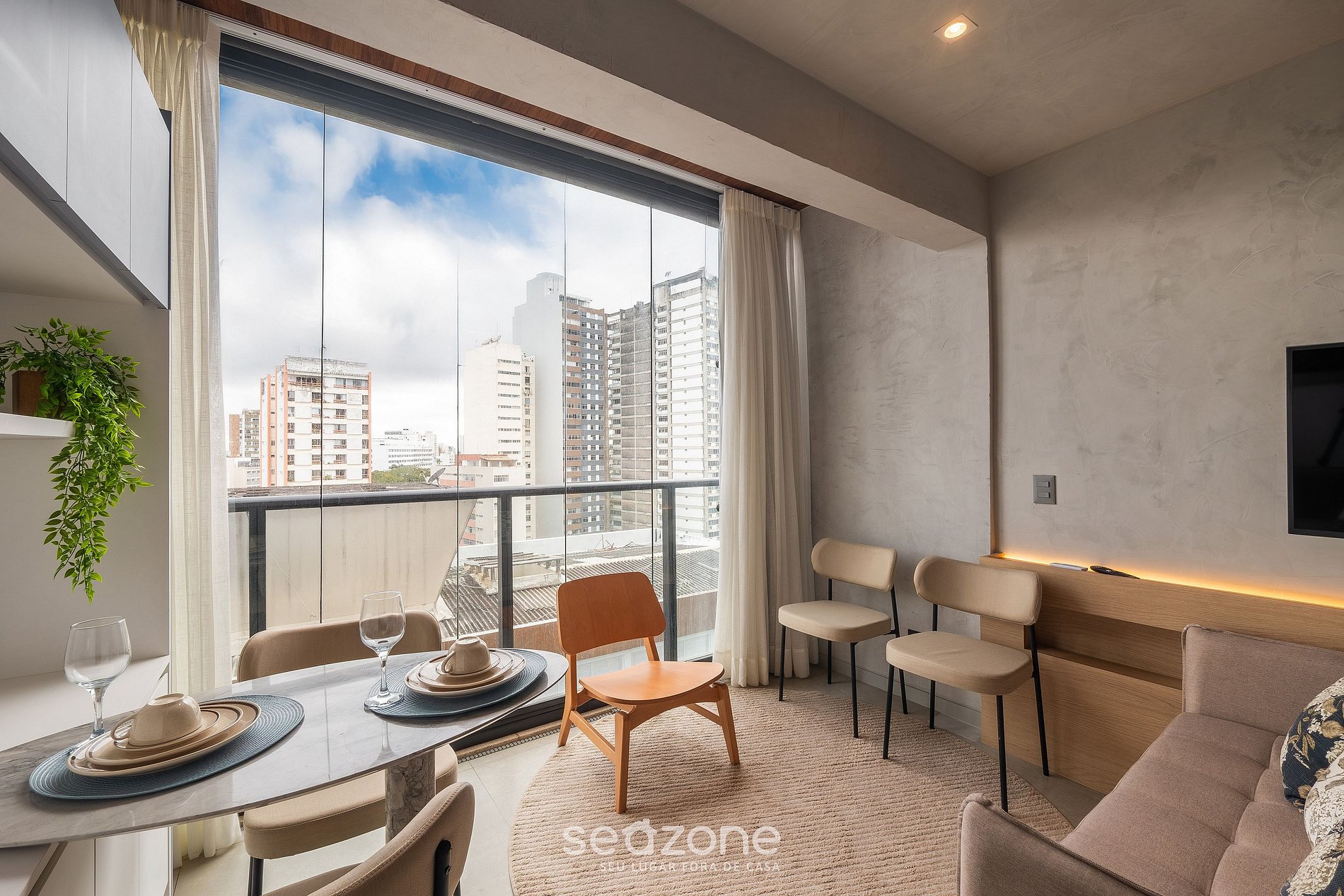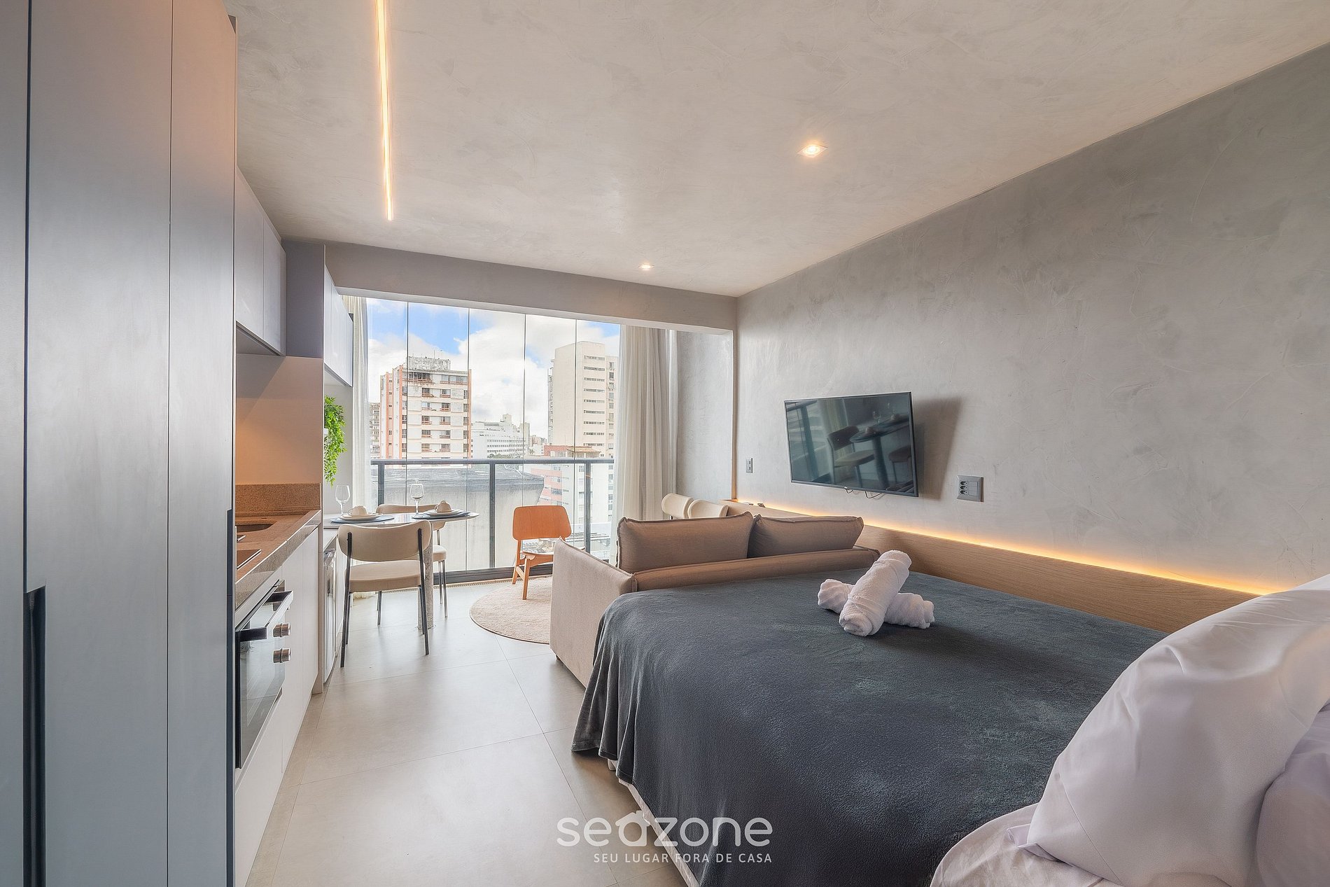 - Ropa de cama y toallas de calidad hotelera (toallas y sábanas extras son cobradas por Seazone);