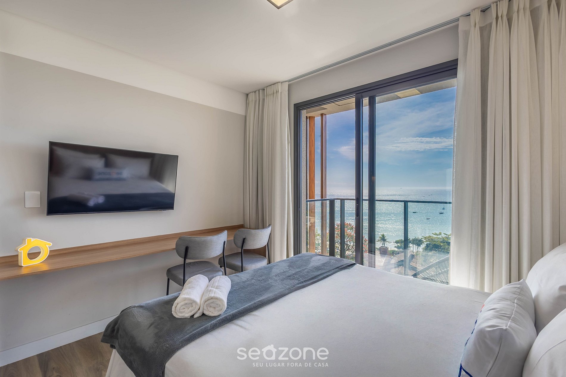 Con cama queen, sofá-cama, Smart TV, cocina totalmente equipada y balcón con vista al mar, esta propiedad ofrece una experiencia completa de descanso y sofisticación. Disfruta de la piscina de borde infinito en el rooftop y de la ubicación privilegiada, a pocos minutos de Beto Carrero.