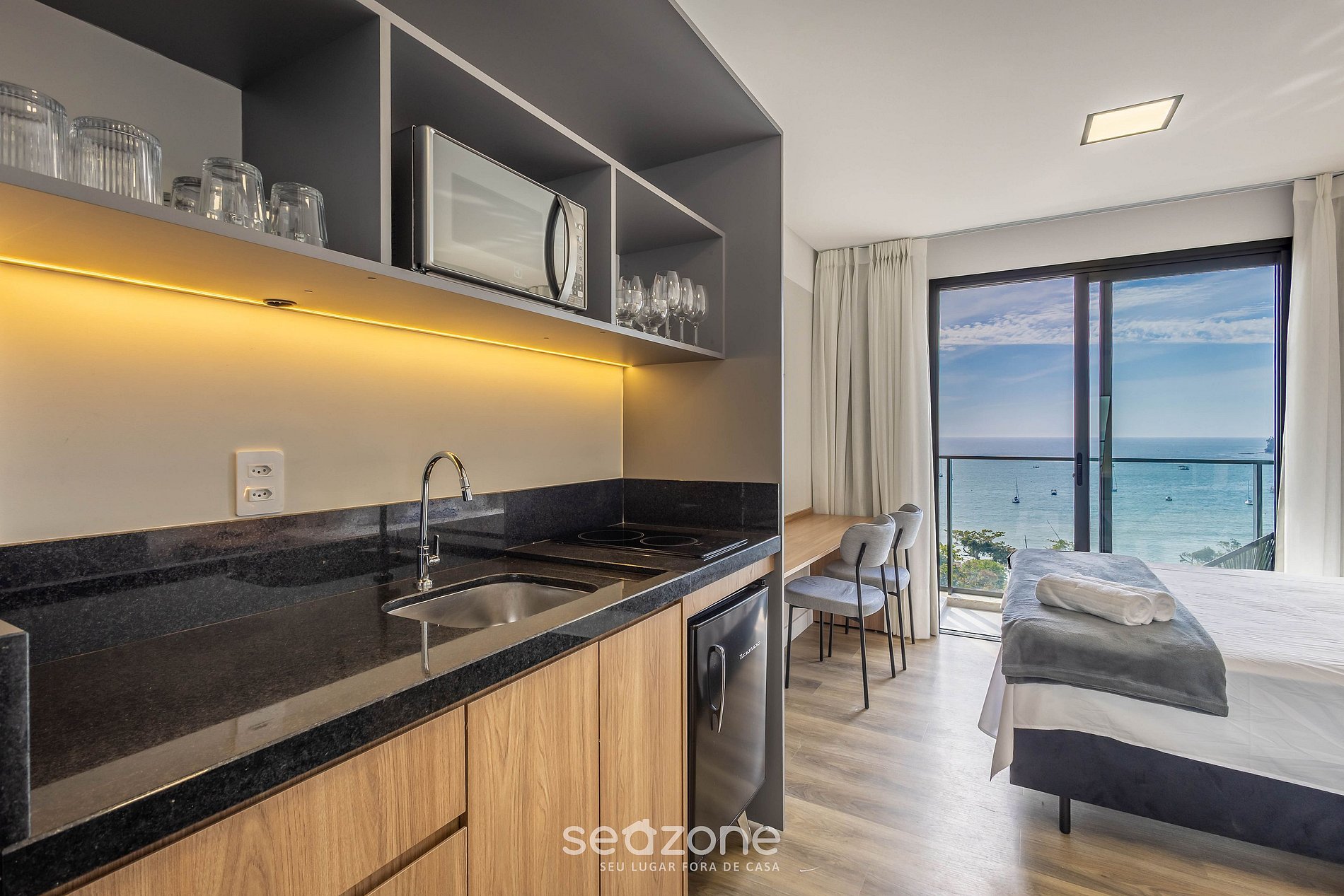 Exclusividad y confort te esperan en este completo studio frente al mar, en Penha.