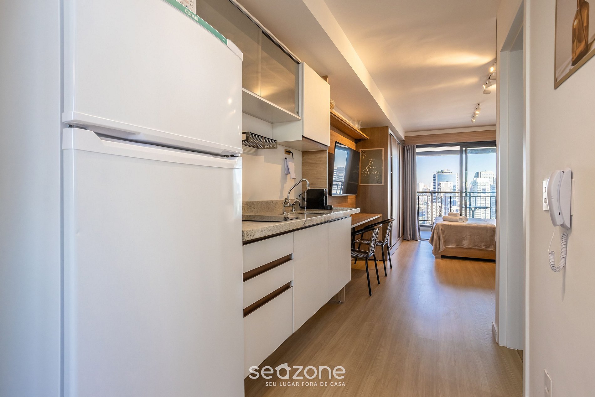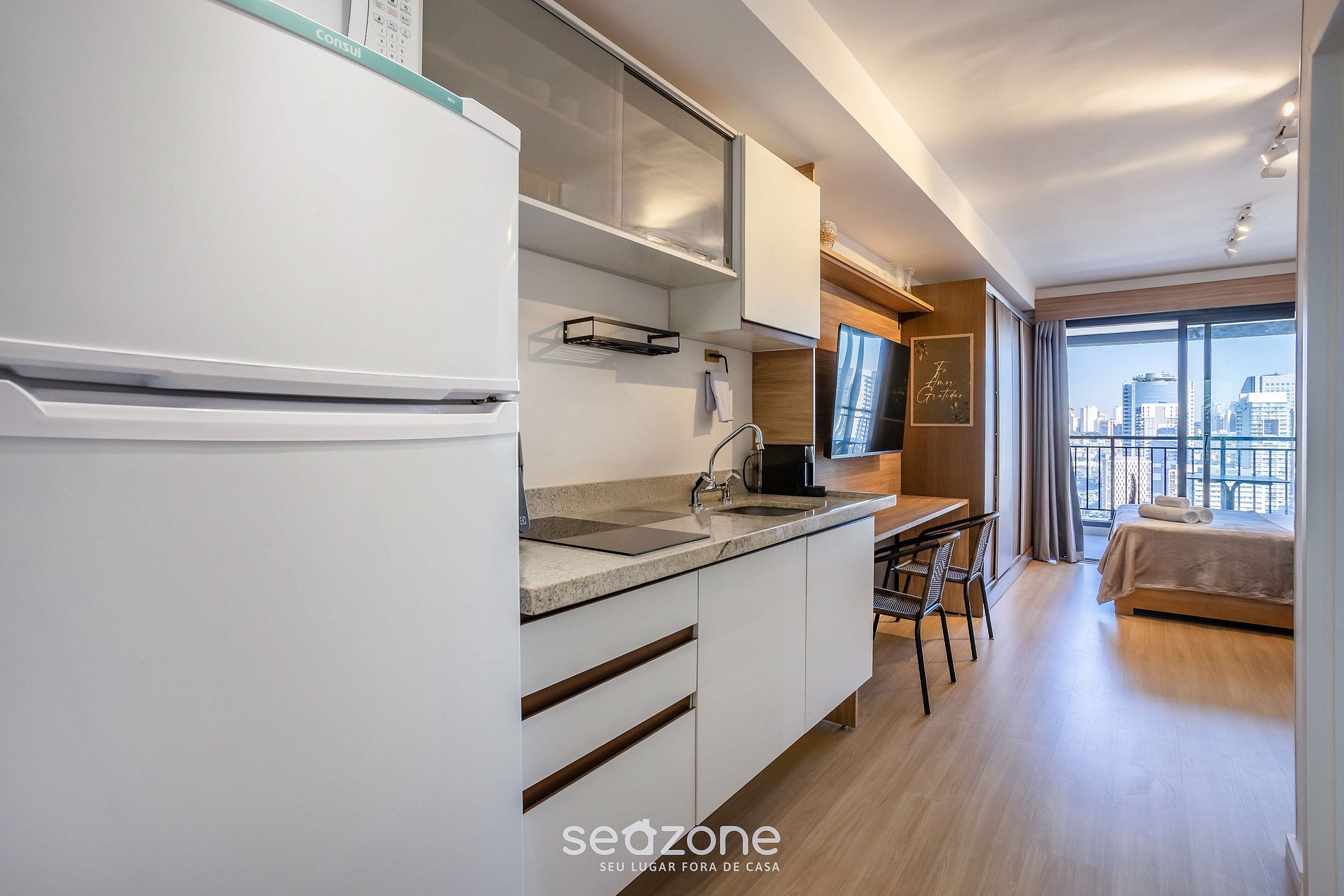 Este estudio es perfecto para quienes desean vivir São Paulo con sofisticación y confort. Totalmente equipado con cama matrimonial, sofá, Smart TV y cocina completa. El balcón ofrece una vista panorámica impresionante.