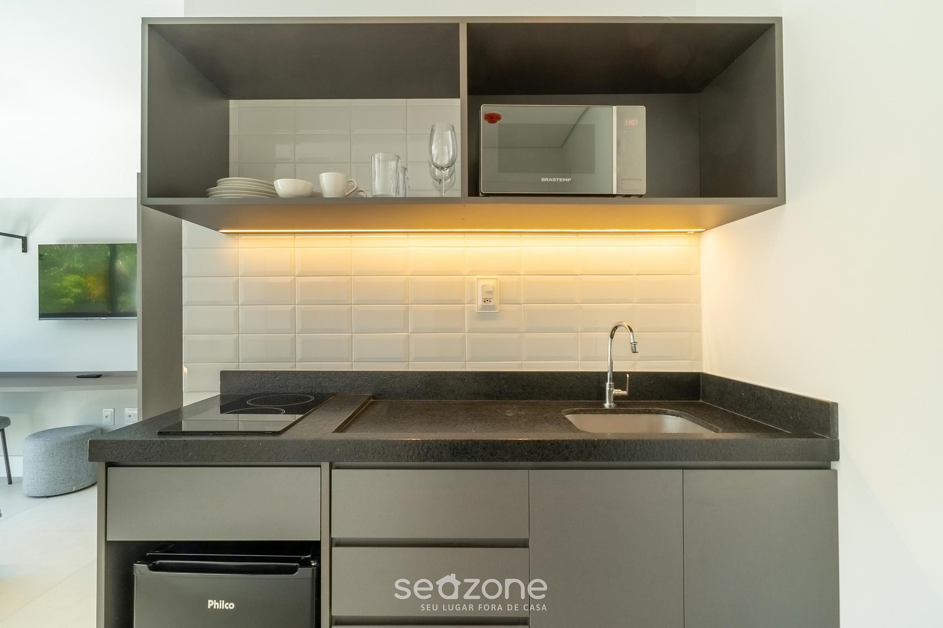 Este estudio moderno ofrece cama queen, Smart TV, aire acondicionado, cocina completa y un área integrada para comer o trabajar. La amplia iluminación natural y la vista verde aportan ligereza al ambiente. En las áreas comunes, la piscina y el rooftop elevan la experiencia. A pocos pasos de la Lagoa da Conceição, con fácil acceso al centrinho, cafés y playas como Joaquina y Mole.