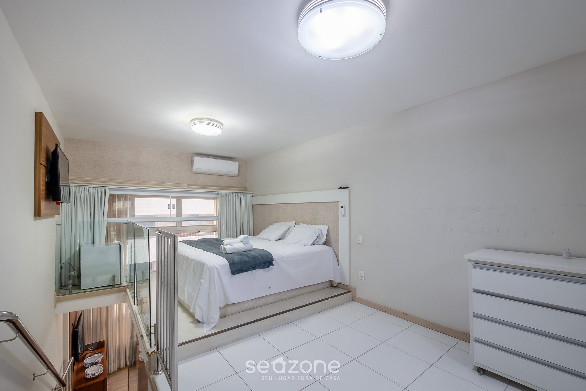 - 1 habitación en el mezzanine con cama king, Smart TV, armario y aire acondicionado;