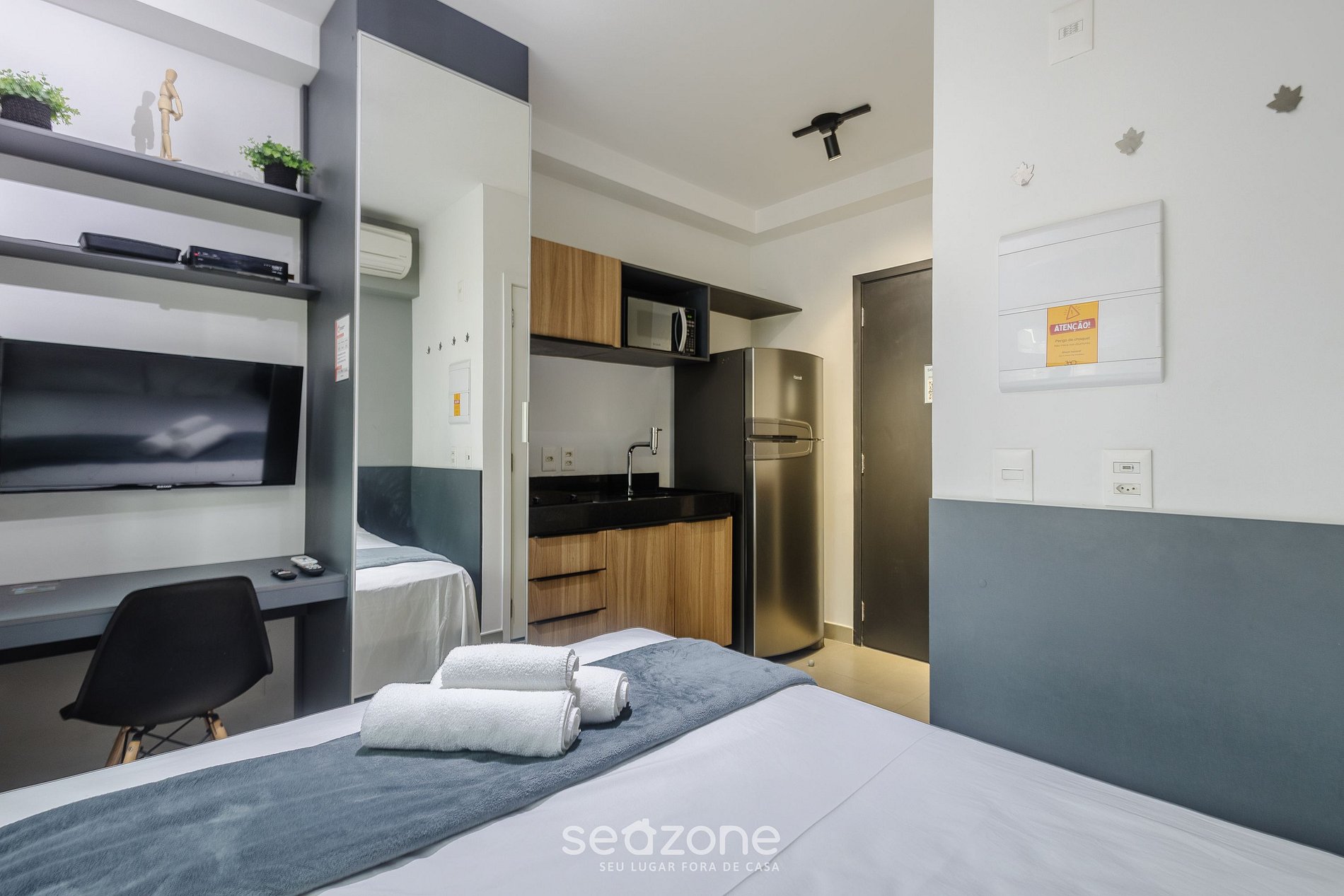 - Ropa de cama y baño de calidad hotelera (sábanas y toallas adicionales son cobradas por Seazone);