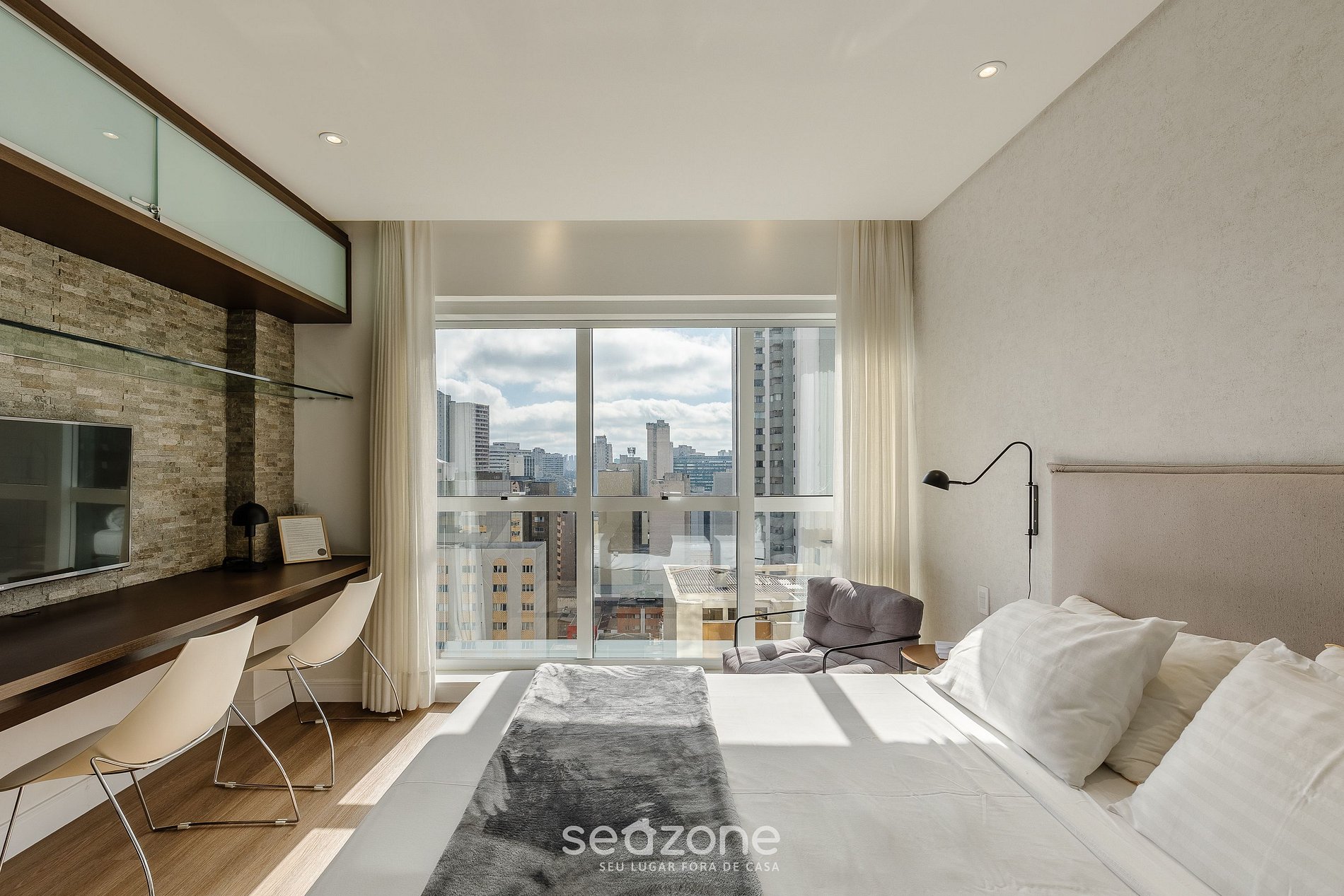 Viva la modernidad y el encanto en nuestro estudio funcional en Curitiba. Con una cómoda cama queen, smart TV para maratonear sus series y aire acondicionado para el clima ideal, cada detalle ha sido pensado para usted. La cocina completa proporciona total autonomía durante su visita. En el condominio, también podrá relajarse en la piscina climatizada y en la sala de juegos o mantener su rutina en el gimnasio. ¡Planifique su viaje, reserve su estancia y siéntase como en casa!