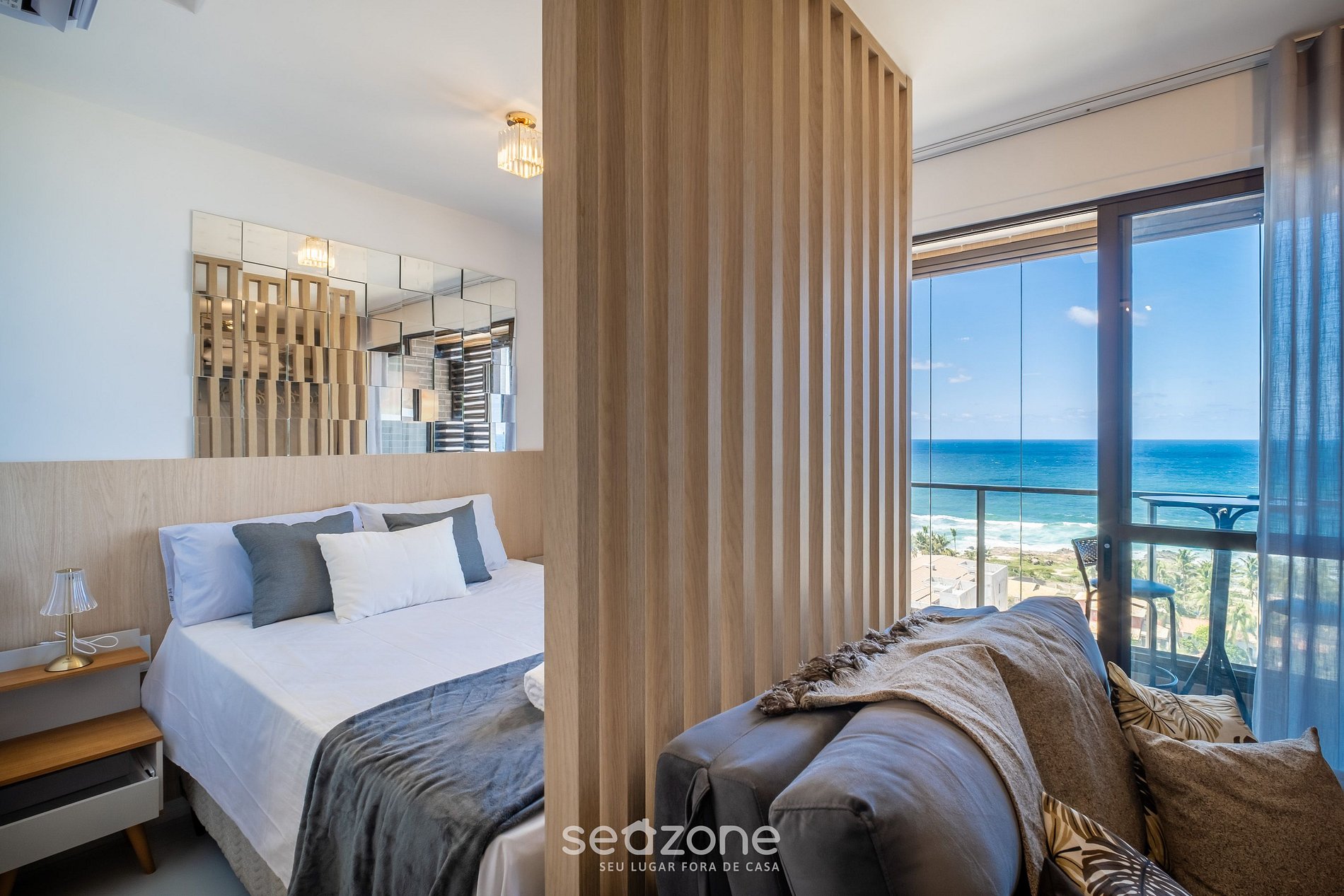 Hospédese en un studio moderno y estratégicamente ubicado en Itapuã. Con cama matrimonial, sofá-cama, Smart TV, aire acondicionado y cocina completa, el espacio ofrece todo el confort para su estadía. Disfrute del balcón con vista panorámica de la ciudad y el mar. Con piscina y gimnasio en el edificio, su experiencia será aún más increíble.