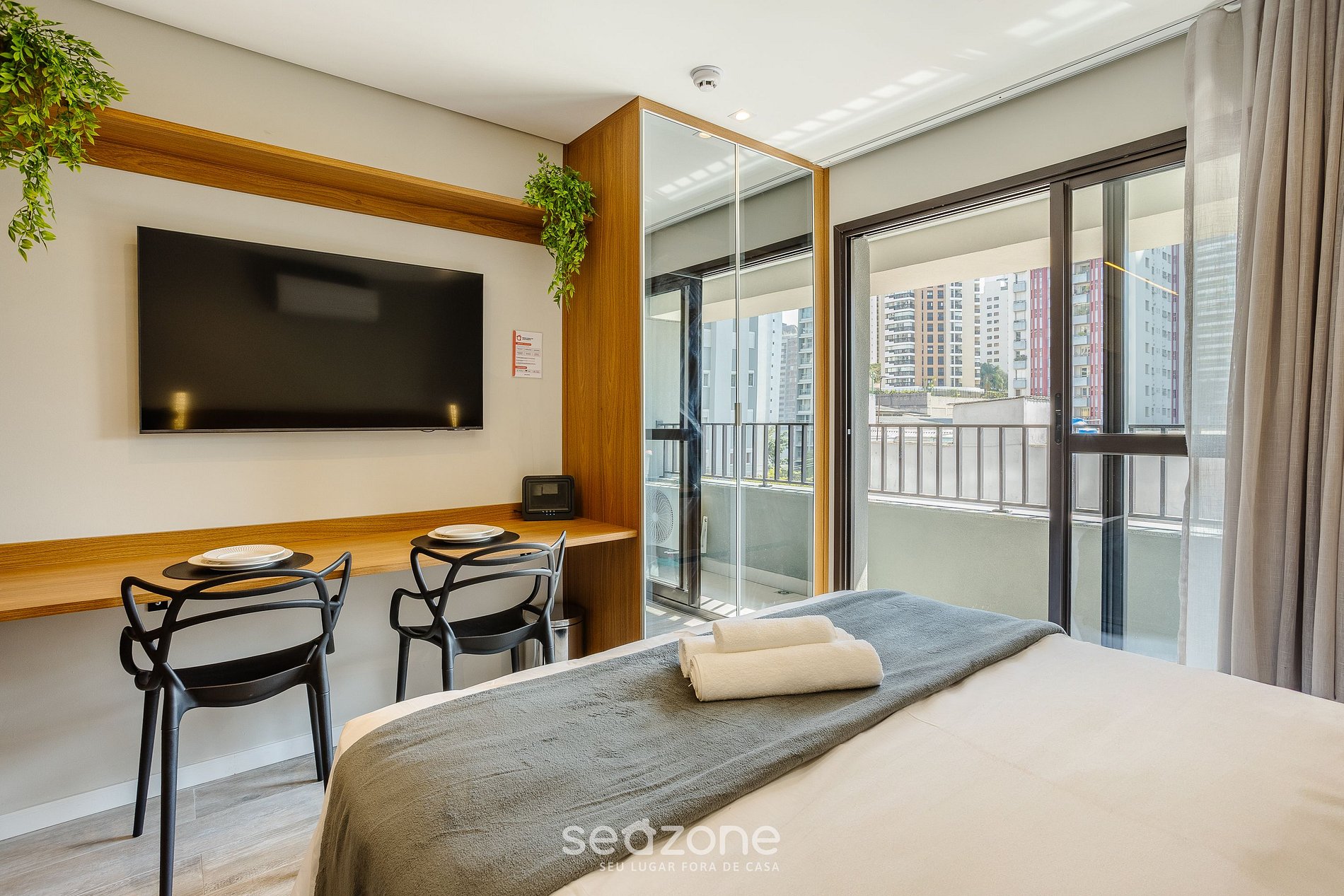Viva el equilibrio perfecto entre elegancia y practicidad en este Studio. Con cama queen, Smart TV, aire acondicionado y cocina completa, cada detalle ha sido pensado para su confort. Disfrute del balcón con vista a la ciudad y aproveche las comodidades del edificio, como el gimnasio y el coworking. La ubicación privilegiada, a pocos minutos del metro, le da acceso a los mejores puntos de la ciudad.