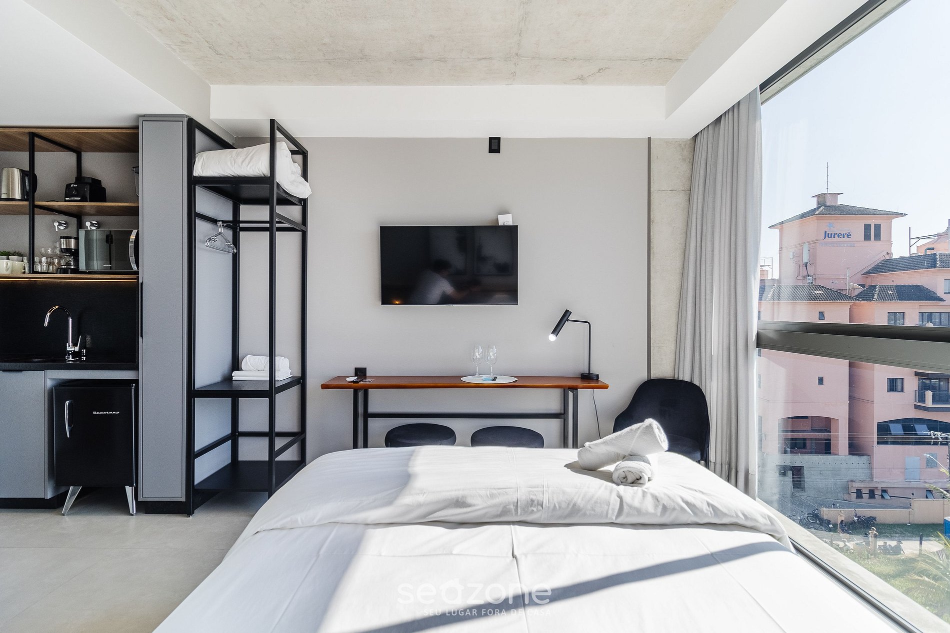 Descubre Spot Jurerê, tu refugio moderno en Florianópolis. Nuestro apartamento combina confort y elegancia, con muebles de alta gama, cocina completa, Smart TV, aire acondicionado y una hermosa vista al mar. En el edificio, disfruta de la piscina en la azotea con vistas increíbles. Situado en Jurerê, estarás a pocos pasos de playas maravillosas, excelentes restaurantes y una animada vida nocturna.