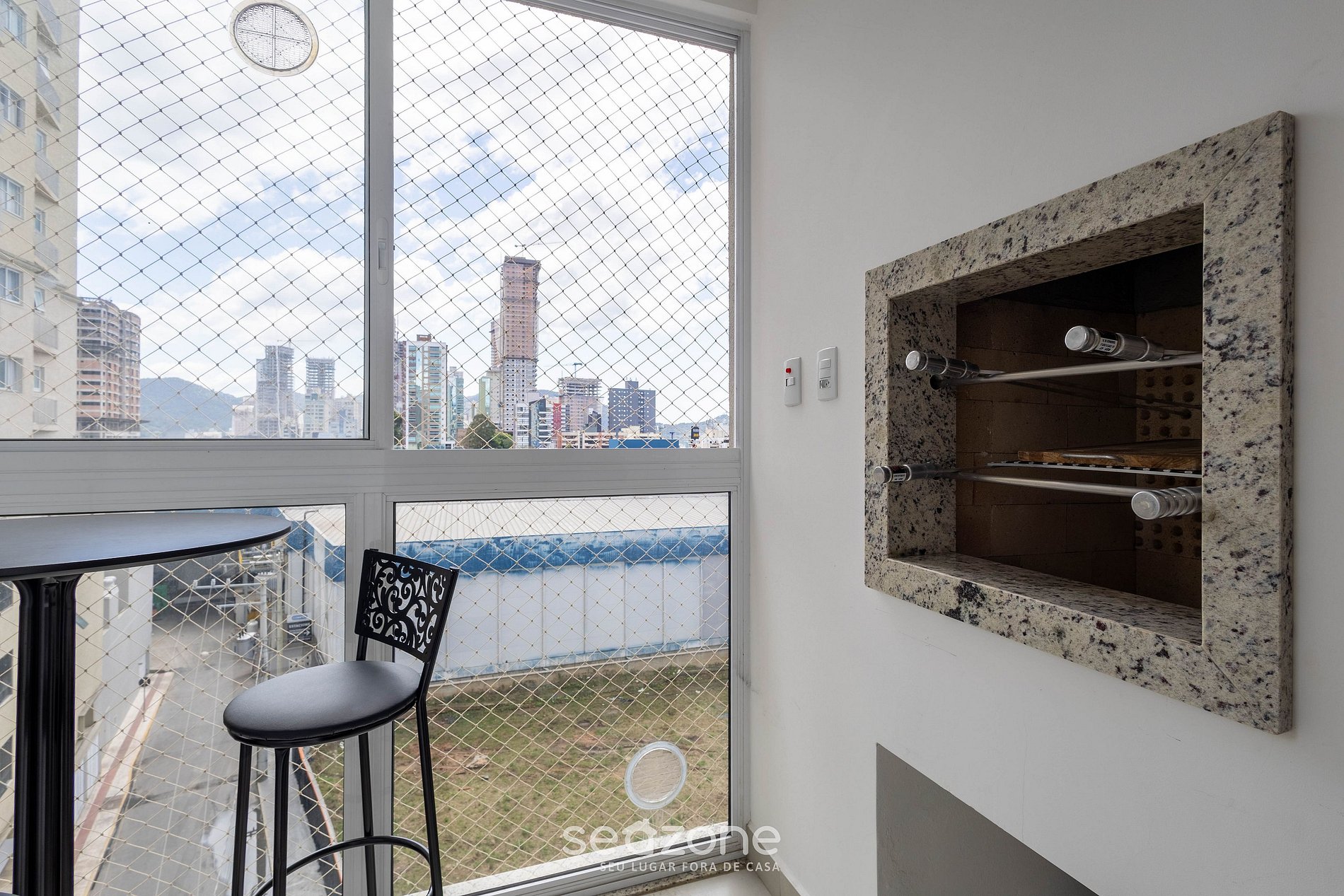- Balcón agradable con parrilla, muebles de exterior y una vista increíble de la ciudad;