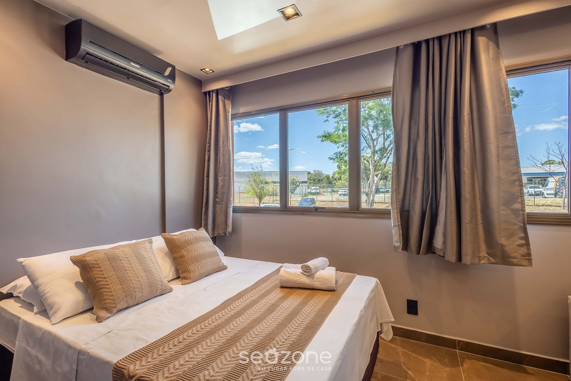 Confort y funcionalidad te esperan en este estudio en Brasilia. Equipado con una acogedora cama doble, una smart TV para tus películas favoritas y aire acondicionado para un clima ideal, este espacio fue pensado para tu bienestar. La cocina práctica y completa te permite preparar tus propias comidas. Este es el refugio perfecto para relajarte después de un día en la ciudad. ¡No pierdas tiempo, reserva tu estancia ahora!