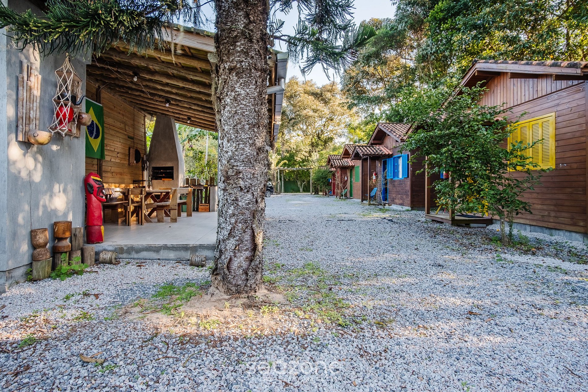 Venga a relajarse y descansar en este espacio perfecto para conectarse con la naturaleza, elegante y muy acogedor, cerca de las orillas de la Lagoa de Ibiraquera y a pocos minutos de los principales senderos y atractivos de Praia do Rosa, combina tranquilidad con bellezas naturales con comodidad y comodidad de las cabañas.