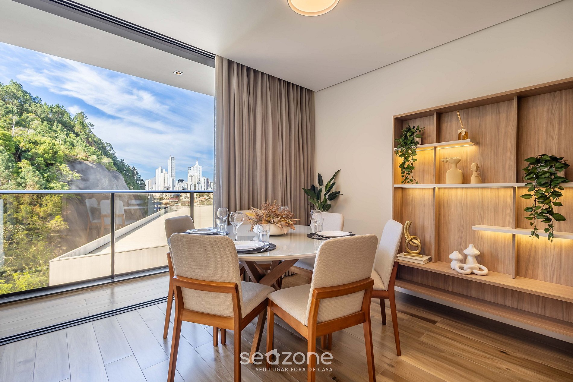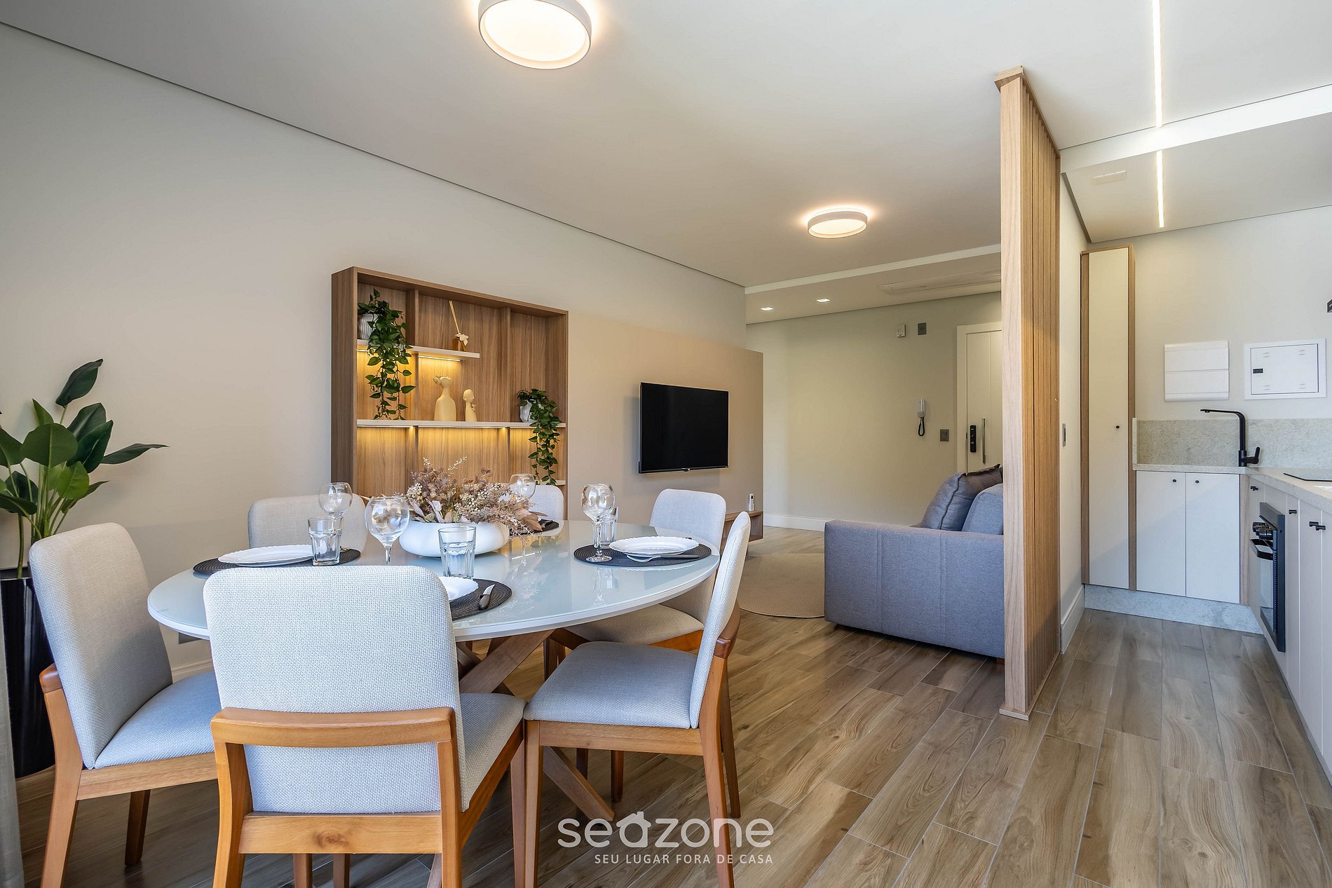 - Espaço para jantar com mesa e 6 cadeiras;