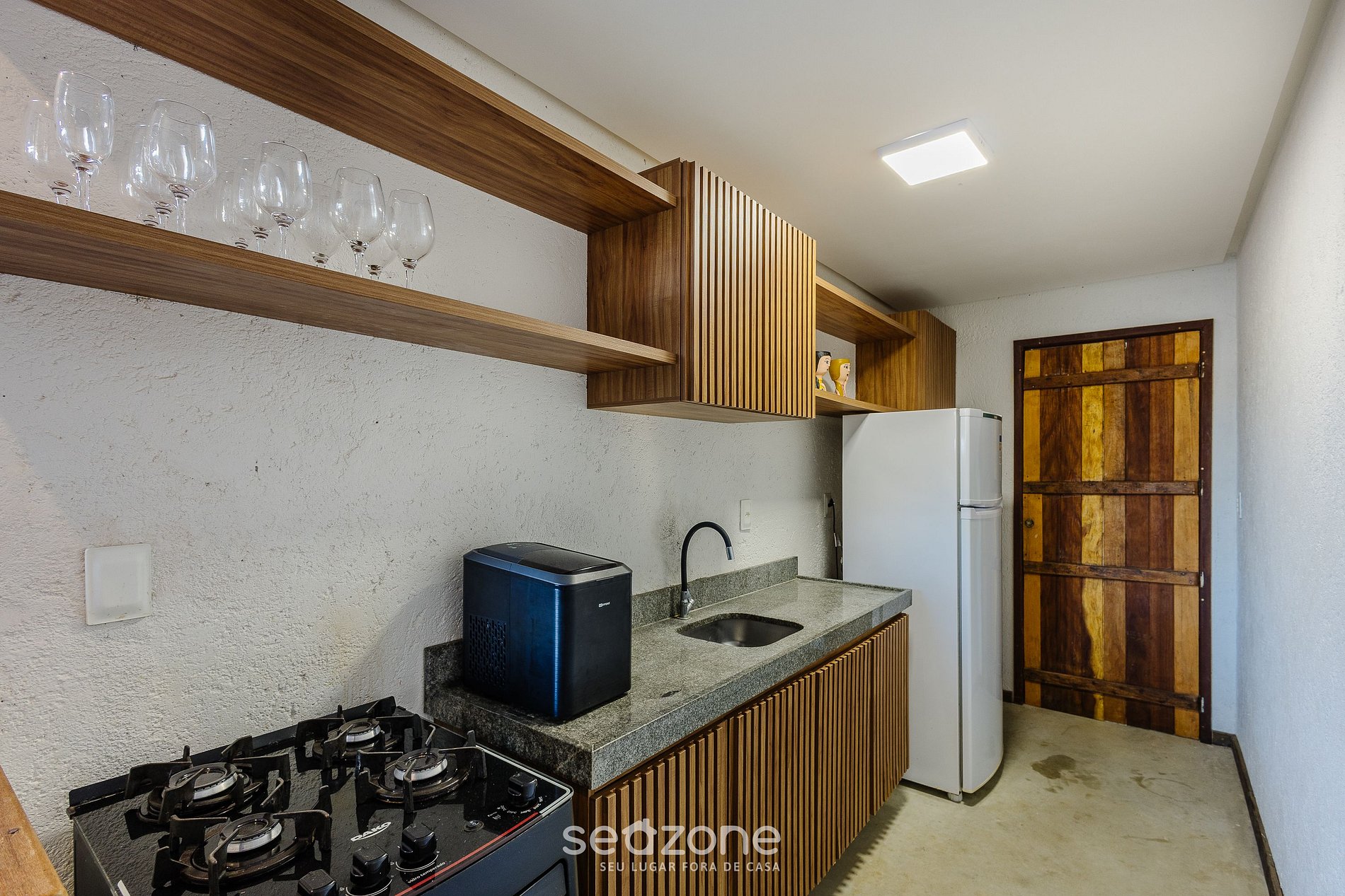 - Cozinha completa com geladeira, fogão e forno a gás, micro-ondas, sanduicheira, Kit café (suporte para filtro, garrafa térmica), chaleira elétrica, liquidificador, taças de vinho, panelas, louças e utensílios;