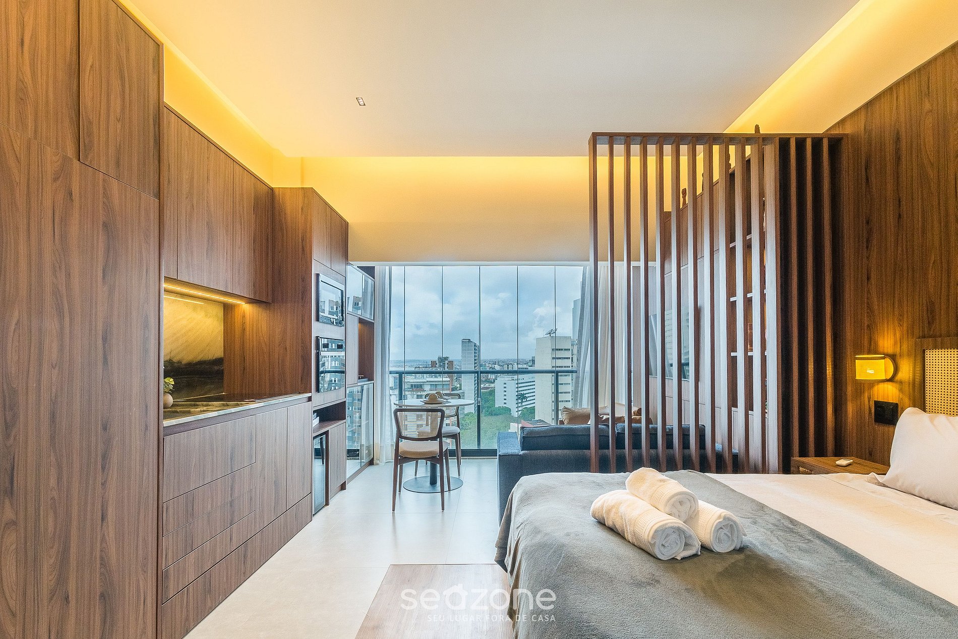 - Roupas de cama e banho de qualidade hoteleira (roupas de cama e toalhas extras são cobrados pela Seazone);