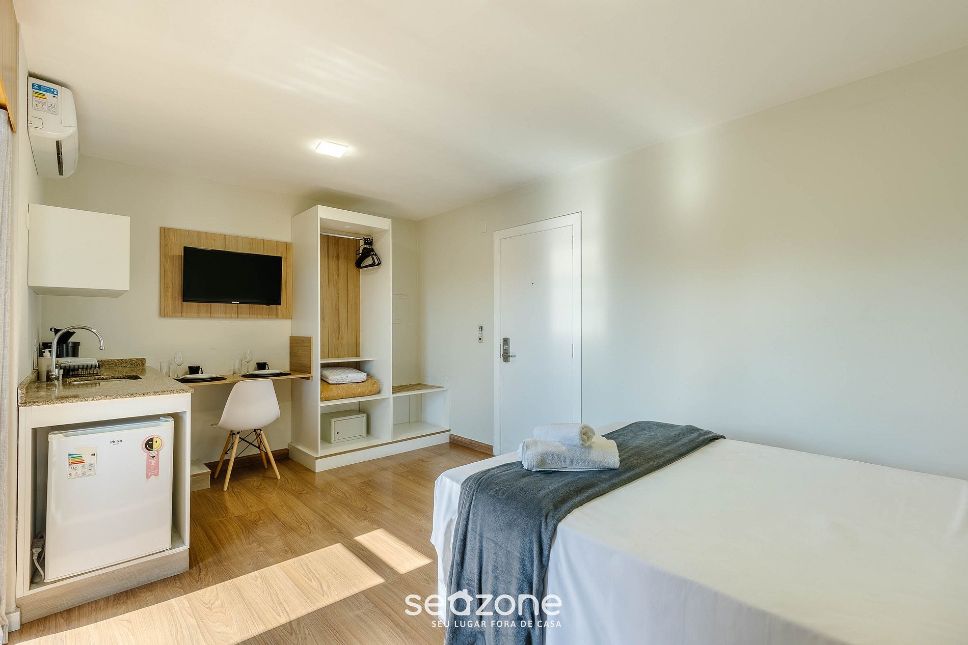 - Roupas de cama e banho de qualidade hoteleira (roupas de cama e toalhas extras são cobrados pela Seazone);