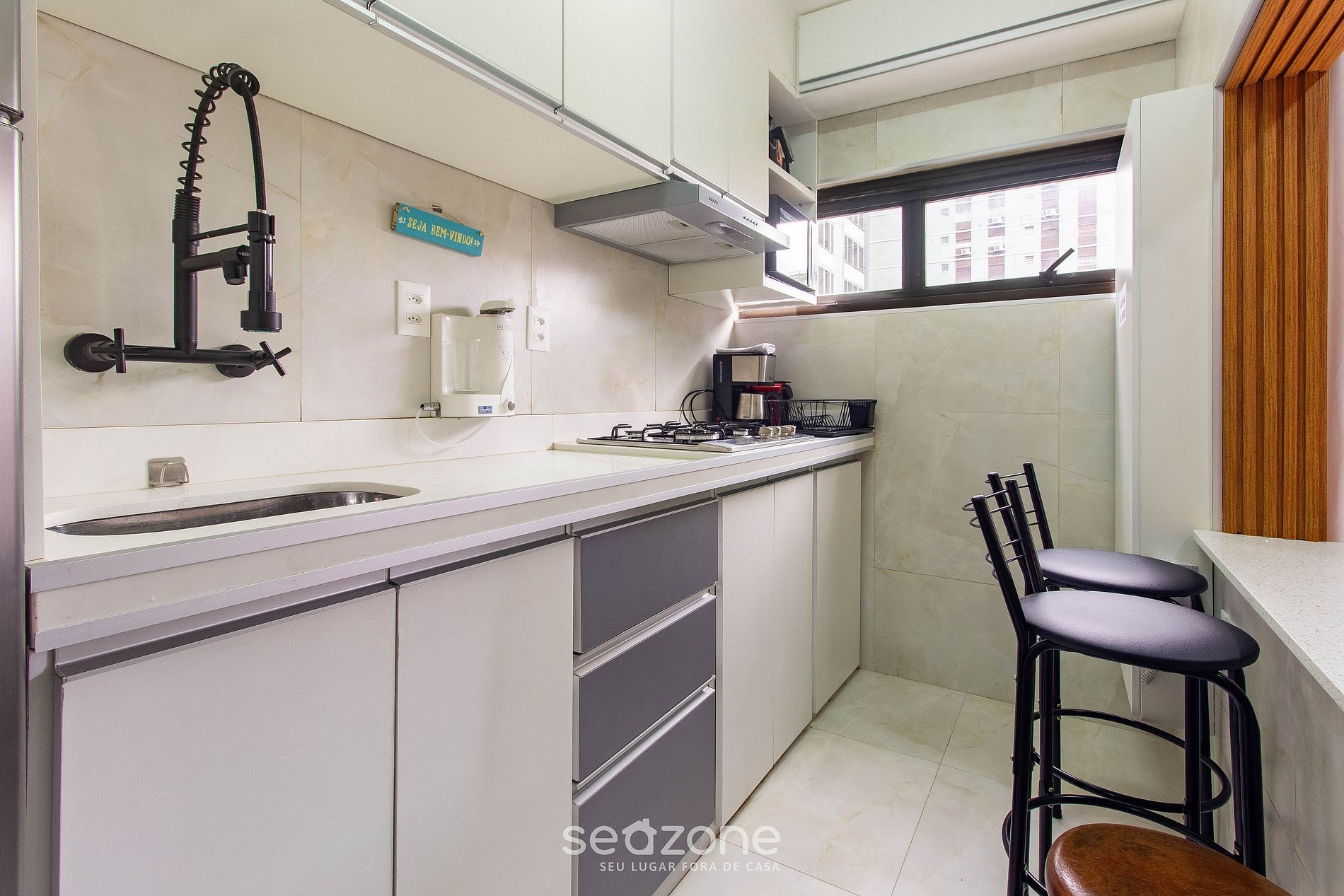 Com suíte no mezanino, Smart TV e ar-condicionado, o espaço é perfeito para quem busca conforto e praticidade. A cozinha completa, sala com sofá-cama e varanda com vista para a cidade tornam sua experiência ainda mais especial. Aproveite também as comodidades do prédio, como piscina aquecida, sauna e academia.