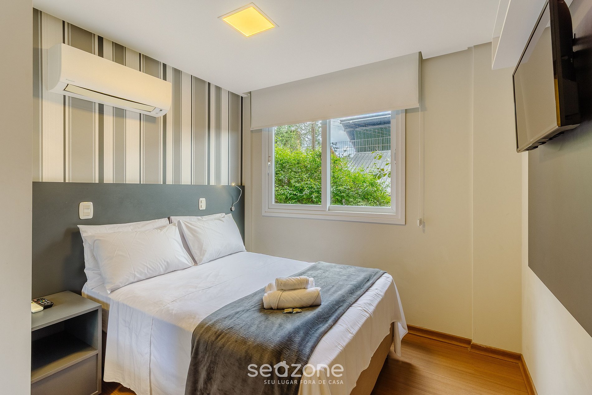 - Roupas de cama e banho de qualidade hoteleira (roupas de cama e toalhas extras são cobrados pela Seazone);