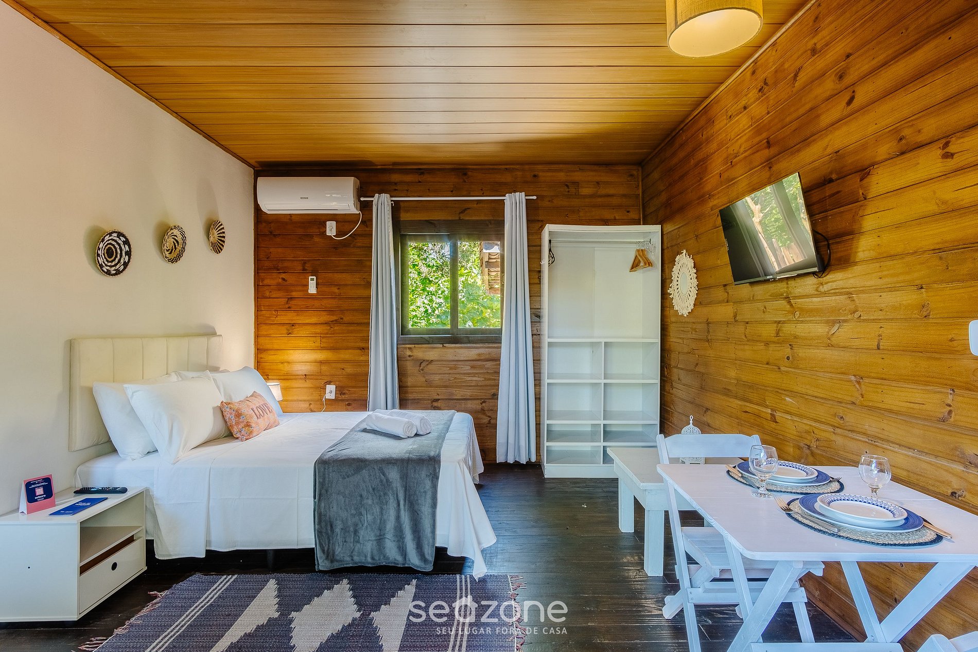 - 1 cama de casal, arara para roupas, smart TV e ar-condicionado