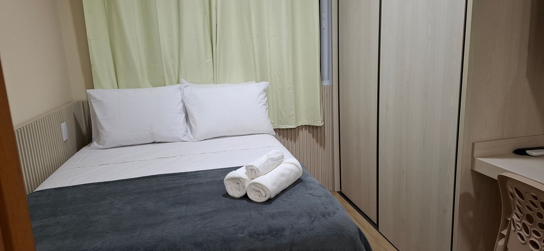 - 1 cama de casal, Smart Tv, armário e ar-condicionado;