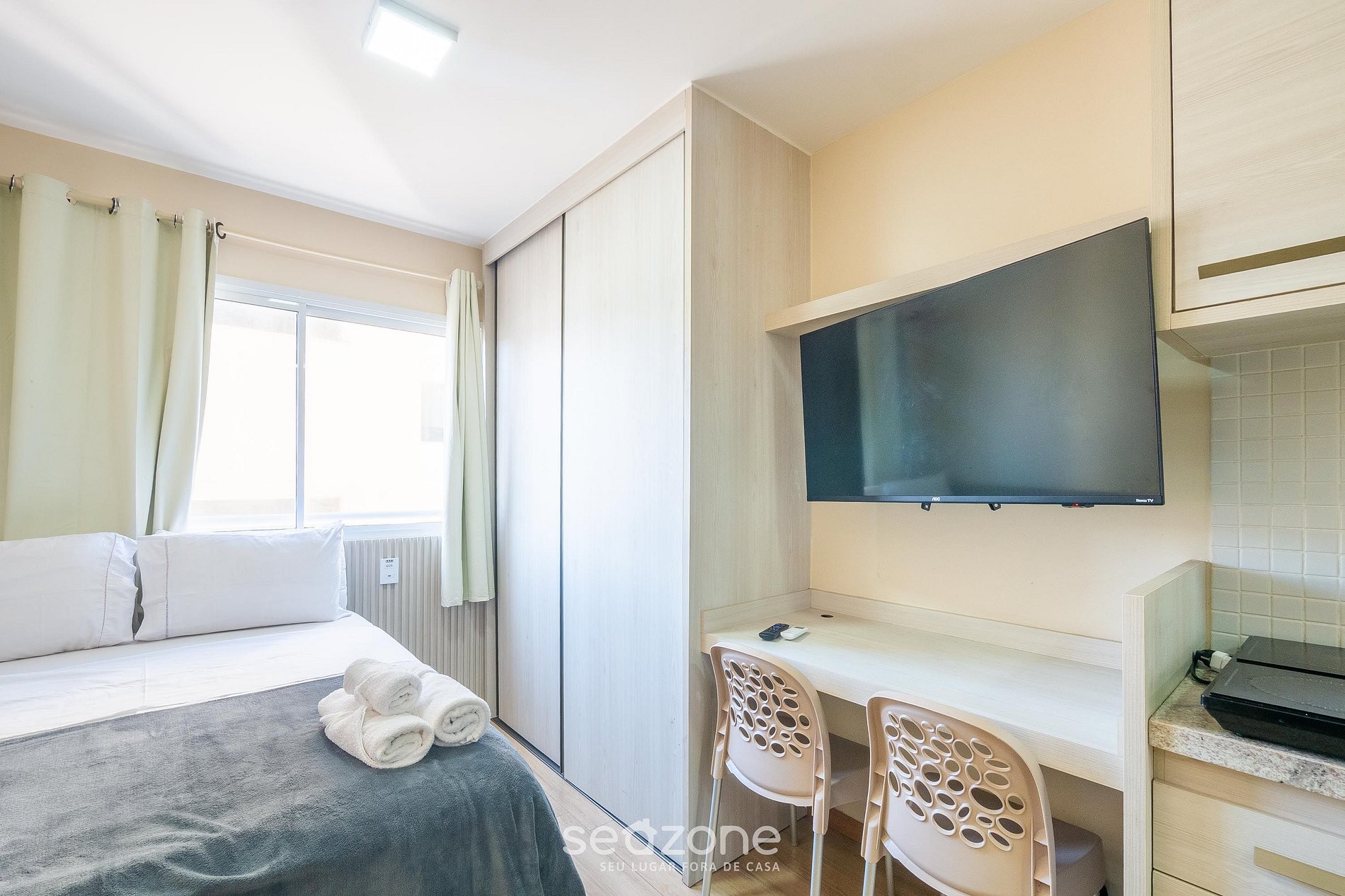 - Roupas de cama e banho de qualidade hoteleira (roupas de cama e toalhas extras são cobrados pela Seazone);