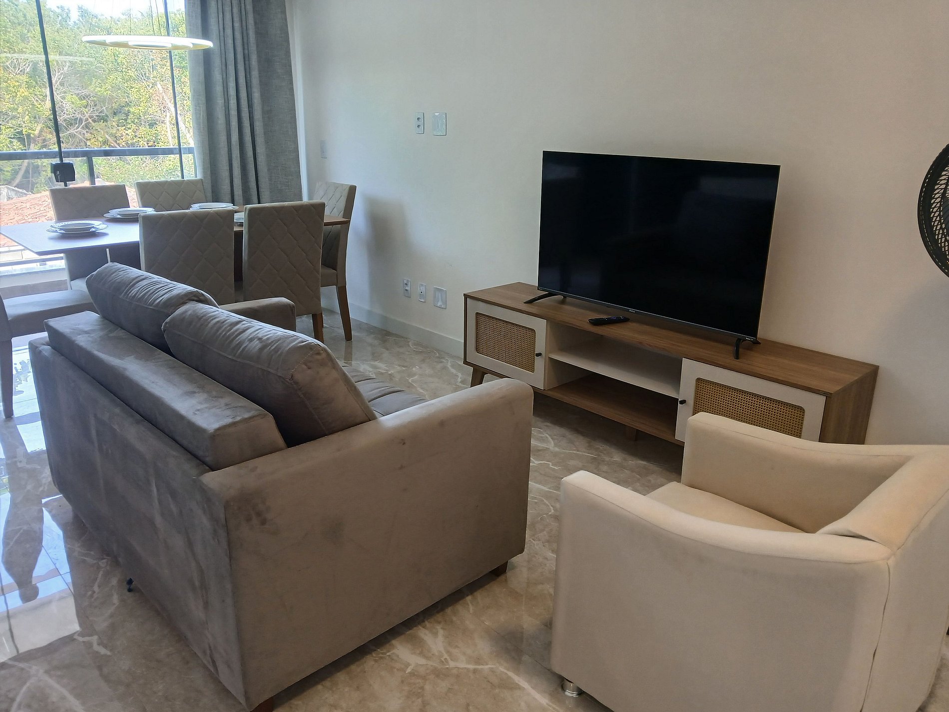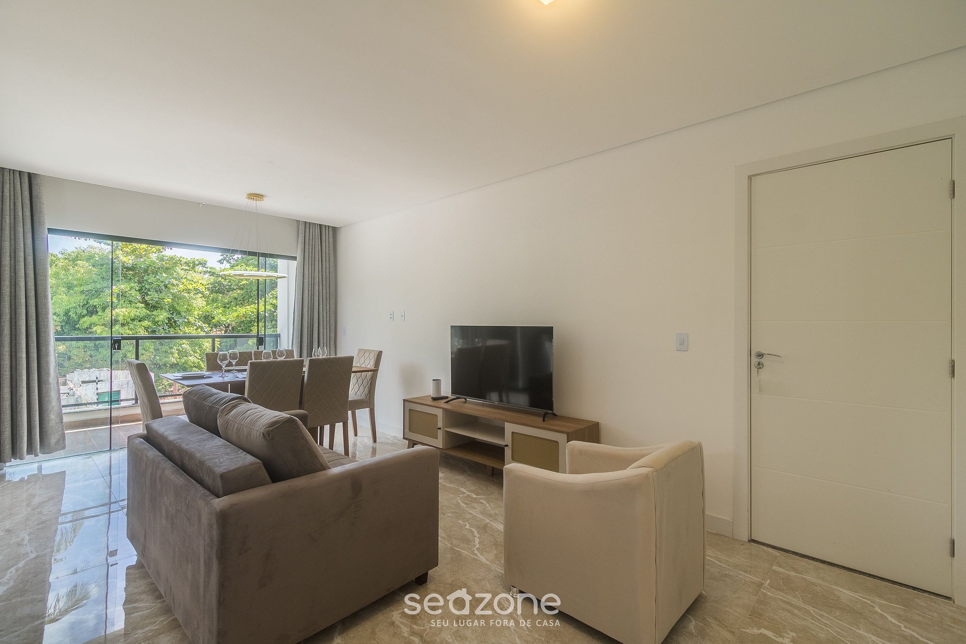 Apto pensado para quem valoriza boa distribuição interna e acesso prático à cidade. São dois quartos climatizados, sendo uma suíte, sala com sofá-cama, cozinha completa, espaço de jantar com Smart TV e varanda agradável. O condomínio oferece piscina, churrasqueira e área infantil. Localização central, a 350m da praia, com fácil acesso a comércio e serviços.