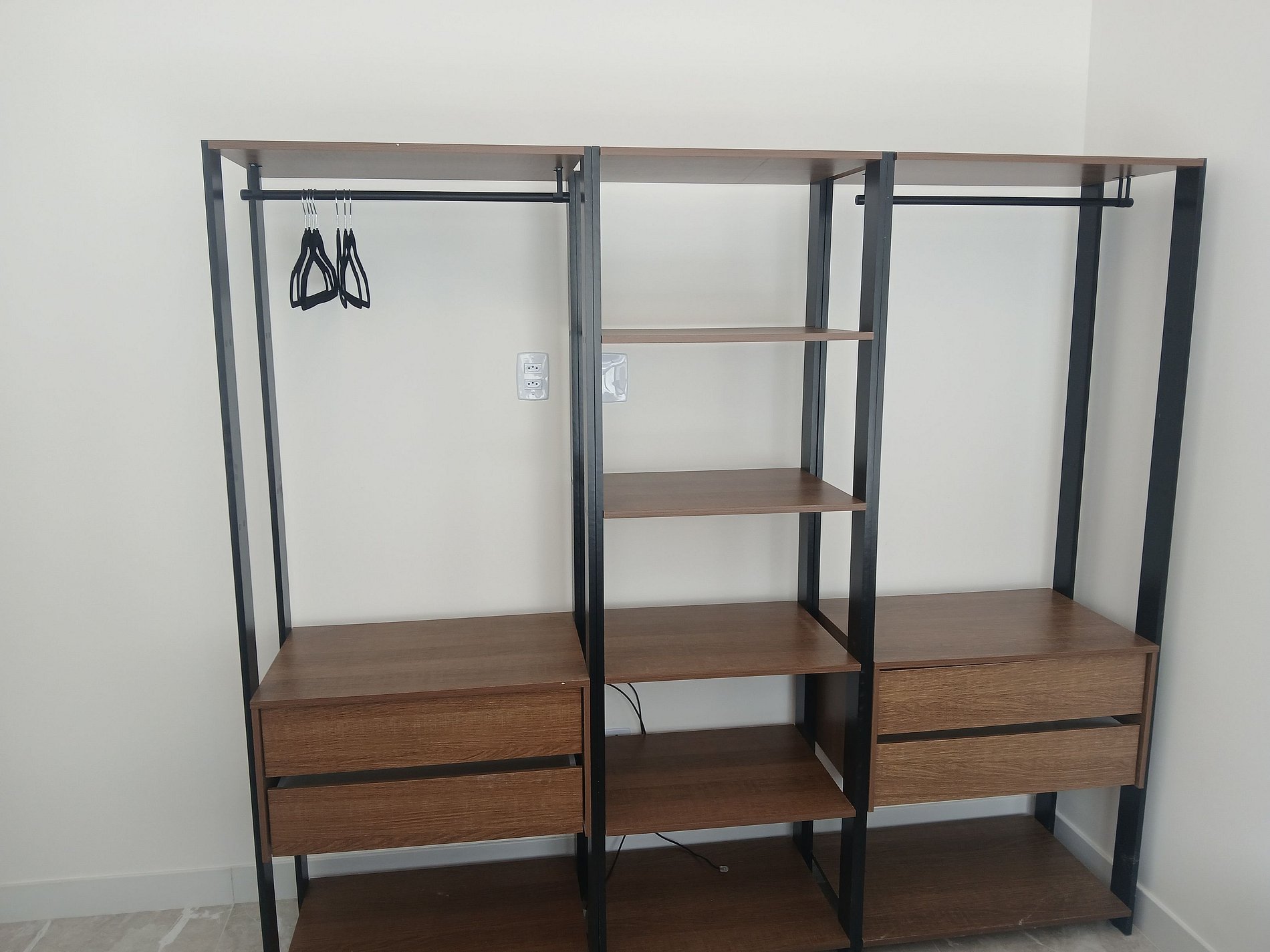 - 1 suíte com cama queen, arara para roupas e ar-condicionado;