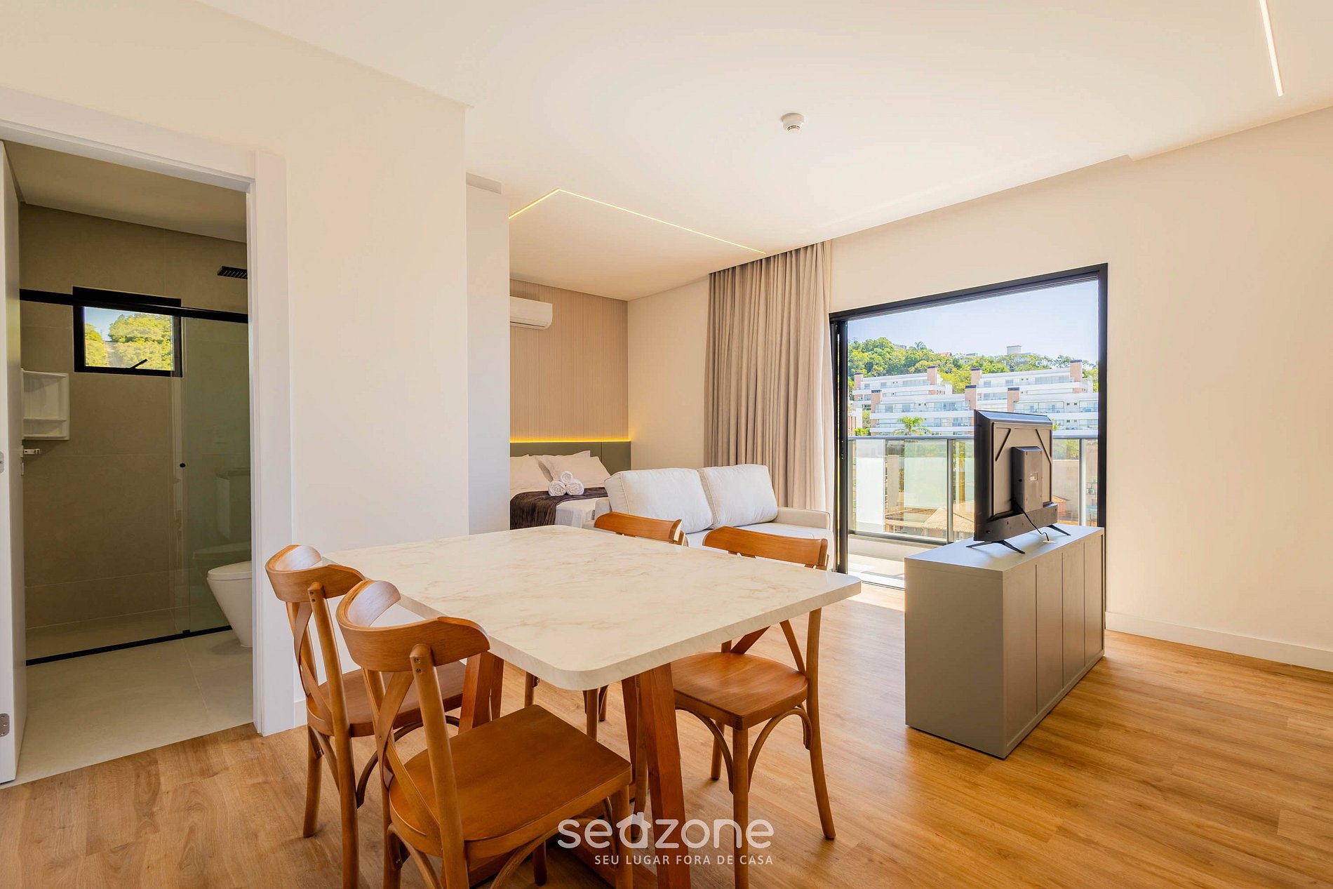 * Roupas de cama e banho de qualidade hoteleira (roupas de cama e toalhas extras são cobrados pela Seazone);