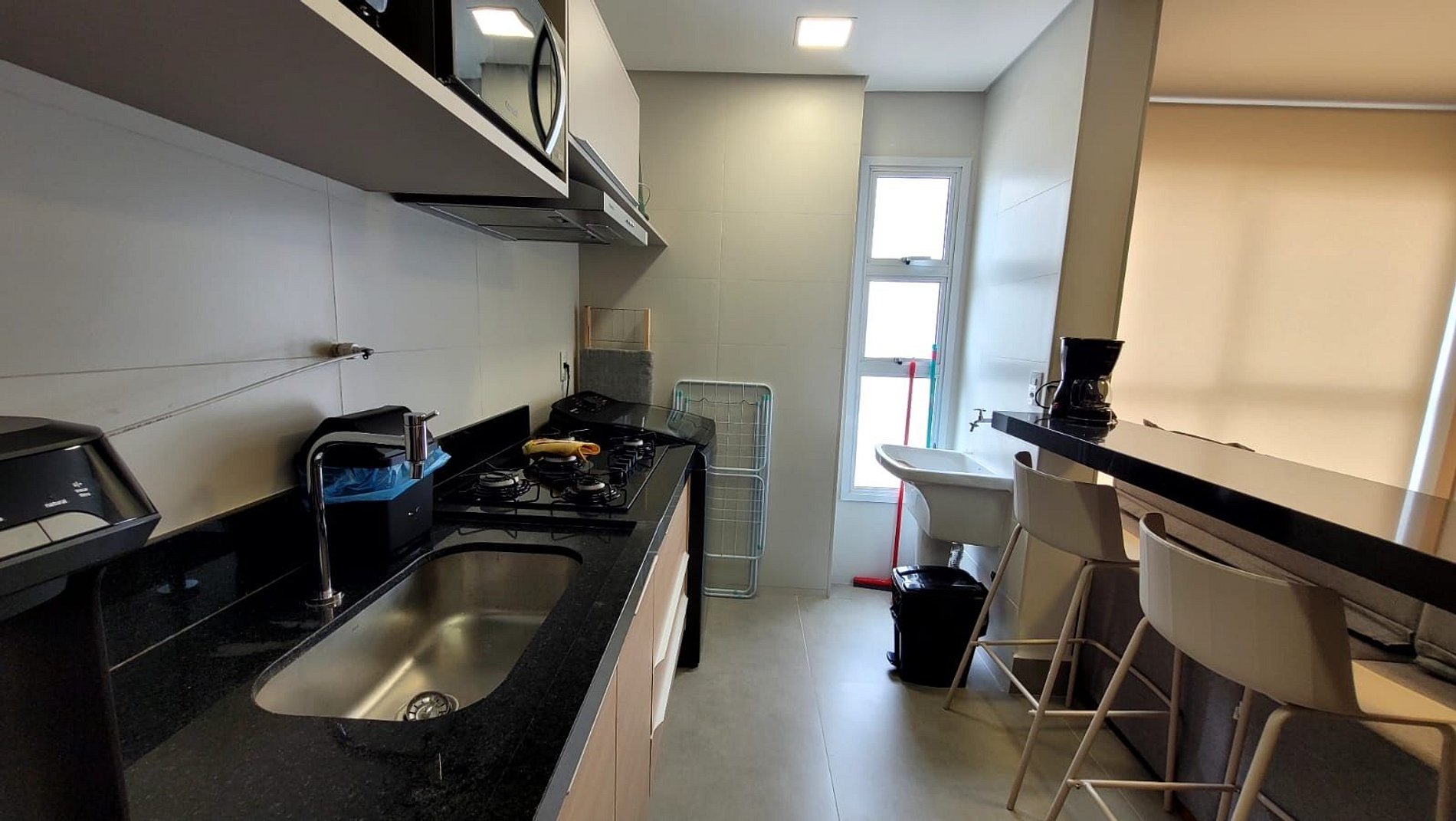 - Cozinha completa com geladeira, fogão cooktop, forno elétrico, micro-ondas, sanduicheira, cafeteira elétrica, liquidificador, taças de vinho, panelas, louças e utensílios;
