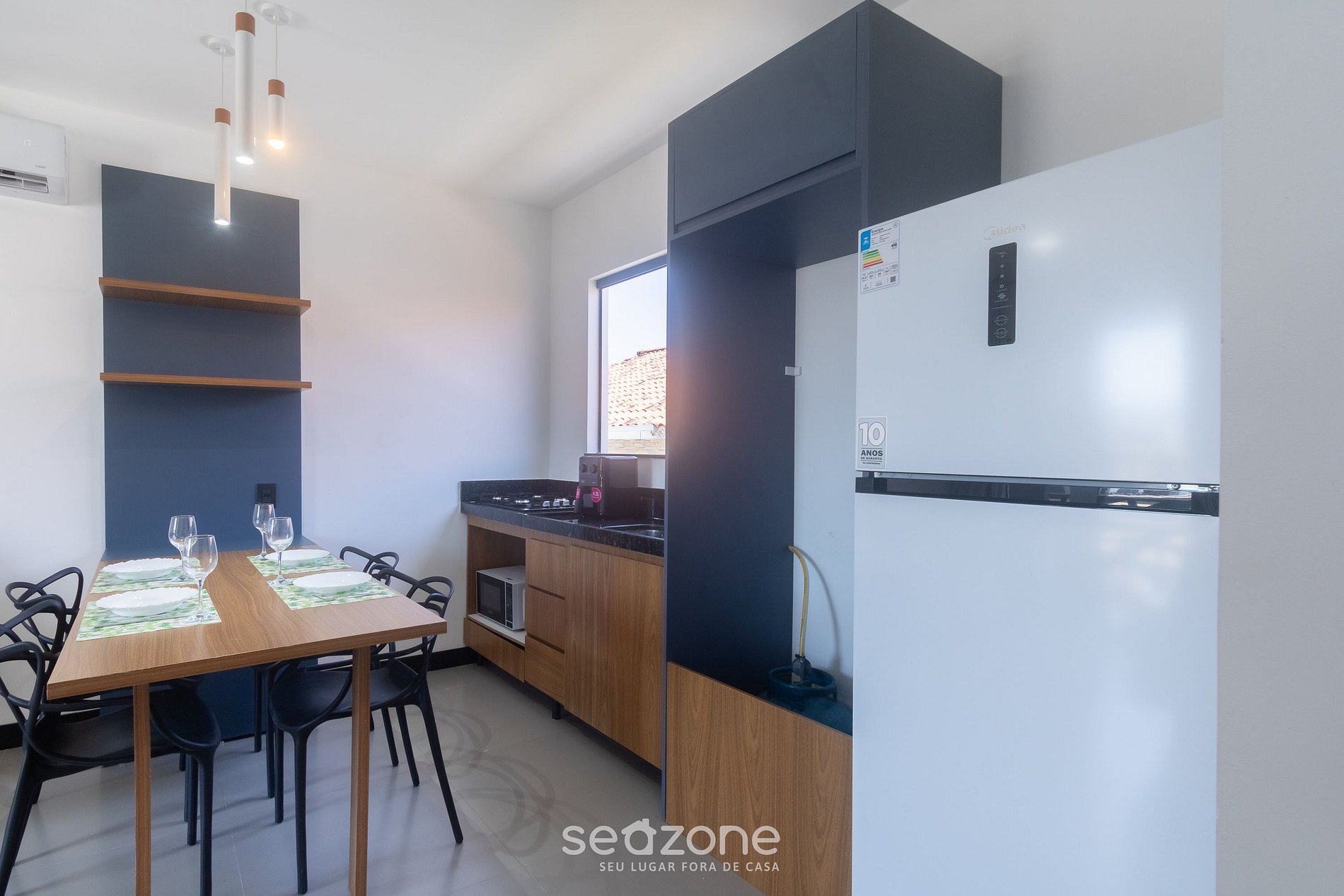 - Espaço para jantar com mesa e cadeiras;