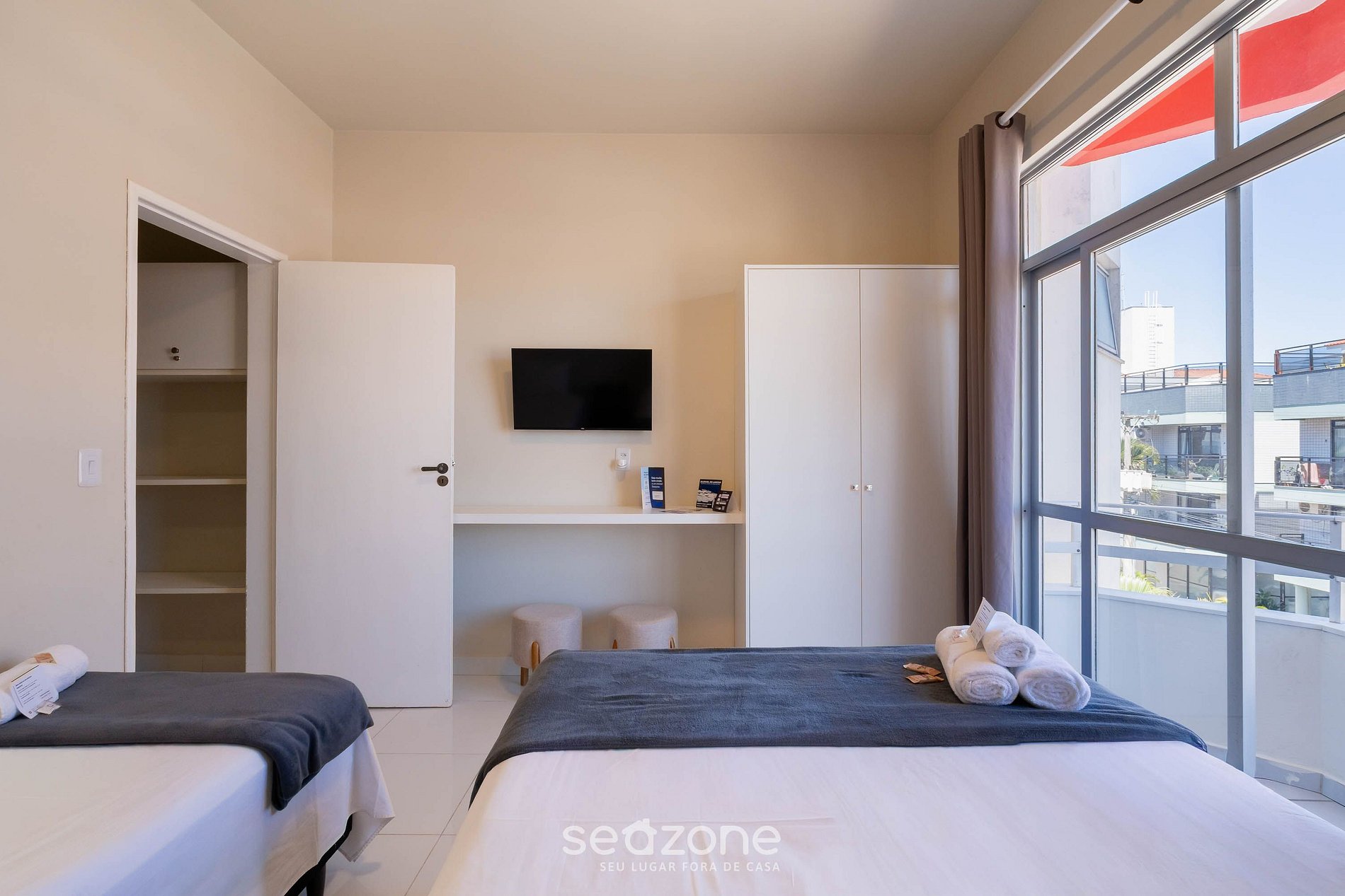 - Roupas de cama e banho de qualidade hoteleira (roupas de cama e toalhas extras são cobrados pela Seazone);