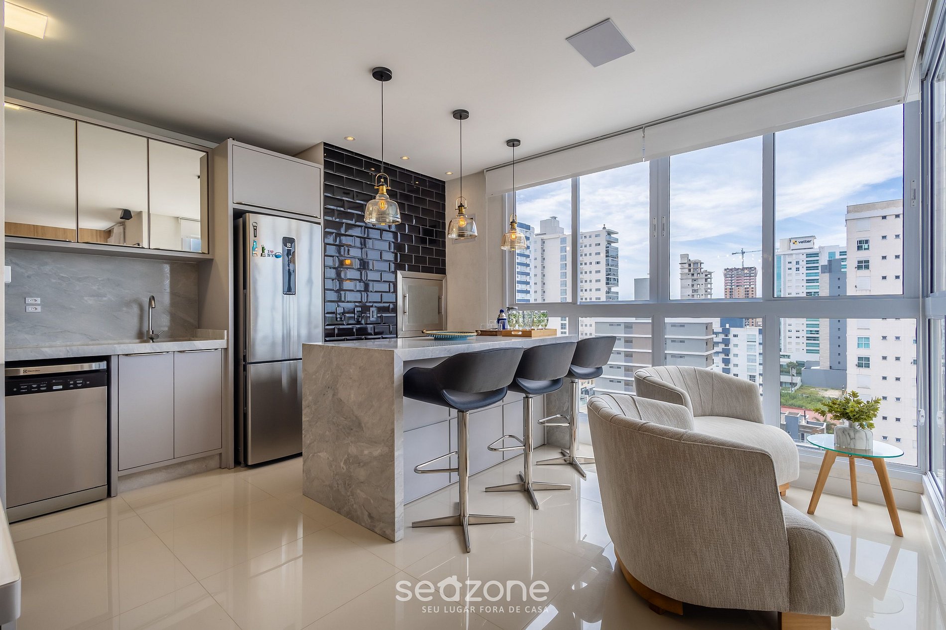 - Roupas de cama e banho de qualidade hoteleira (roupas de cama e toalhas extras são cobrados pela Seazone);