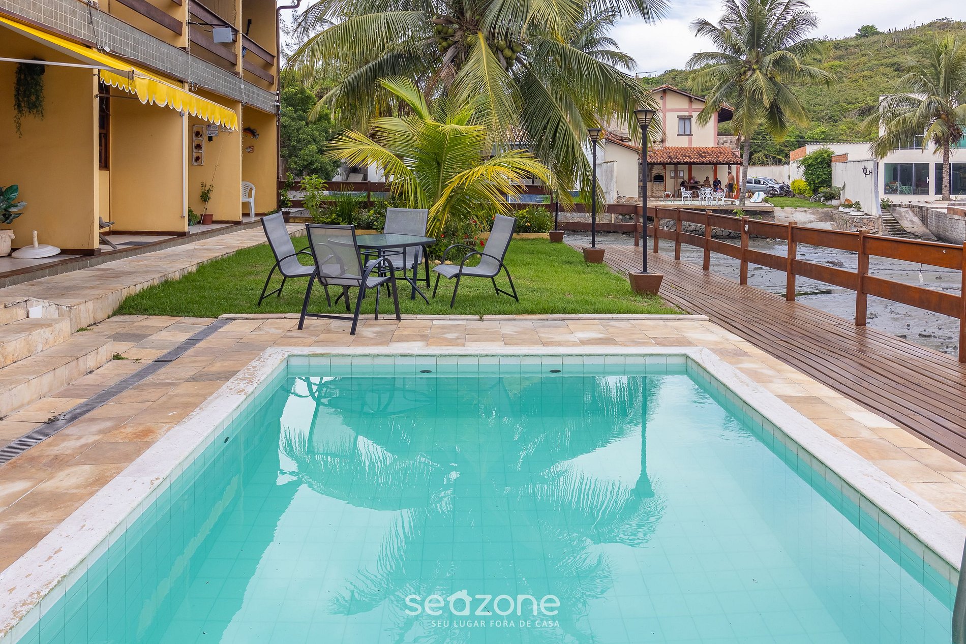 - Roupas de cama/banho e limpeza extras são solicitadas e pagas à parte, direto com a Seazone;