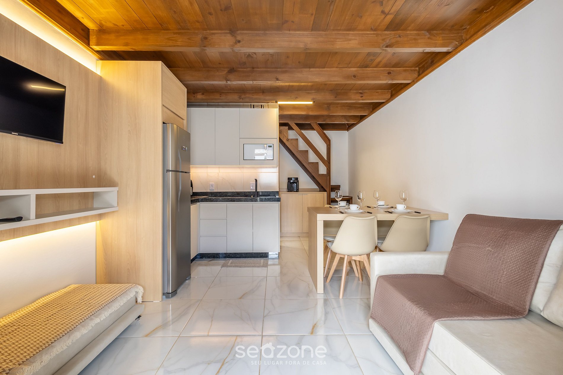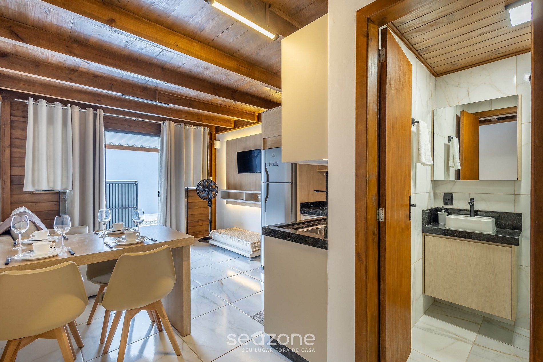 Conforto e sofisticação esperam por você neste chalé totalmente equipado. O quarto no mezanino conta com ar-condicionado e uma varanda privativa, proporcionando um espaço sereno para seu descanso. A sala com sofá-cama e Smart TV, e a cozinha completa, garantem praticidade e lazer. A poucos minutos da Praia de Gravatá e com fácil acesso a mercados, você terá uma localização estratégica para aproveitar o melhor de Penha.