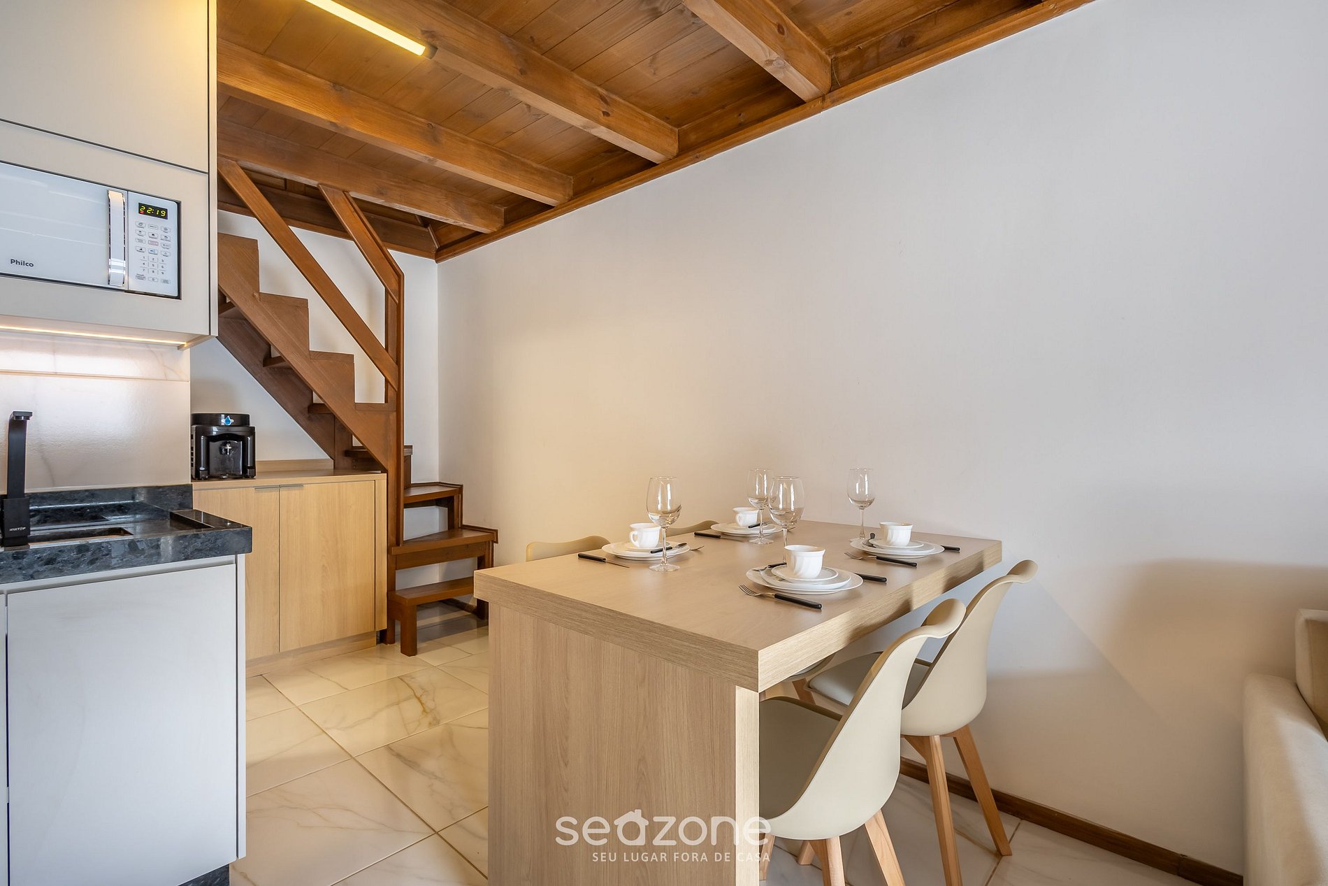 - Espaço para jantar com mesa e cadeiras;