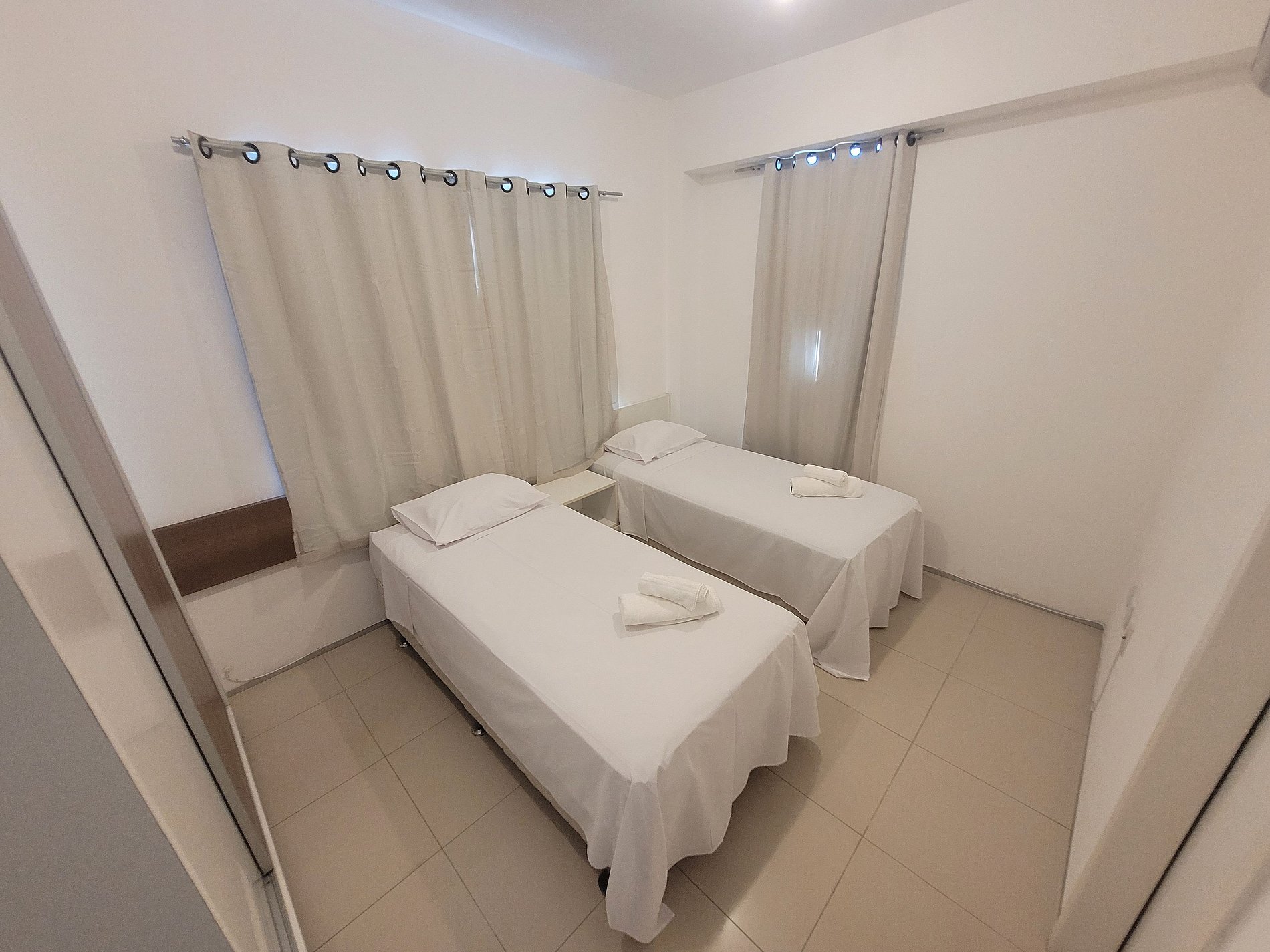 - 1 Quarto com 2 camas de solteiro, armário e ar-condicionado;