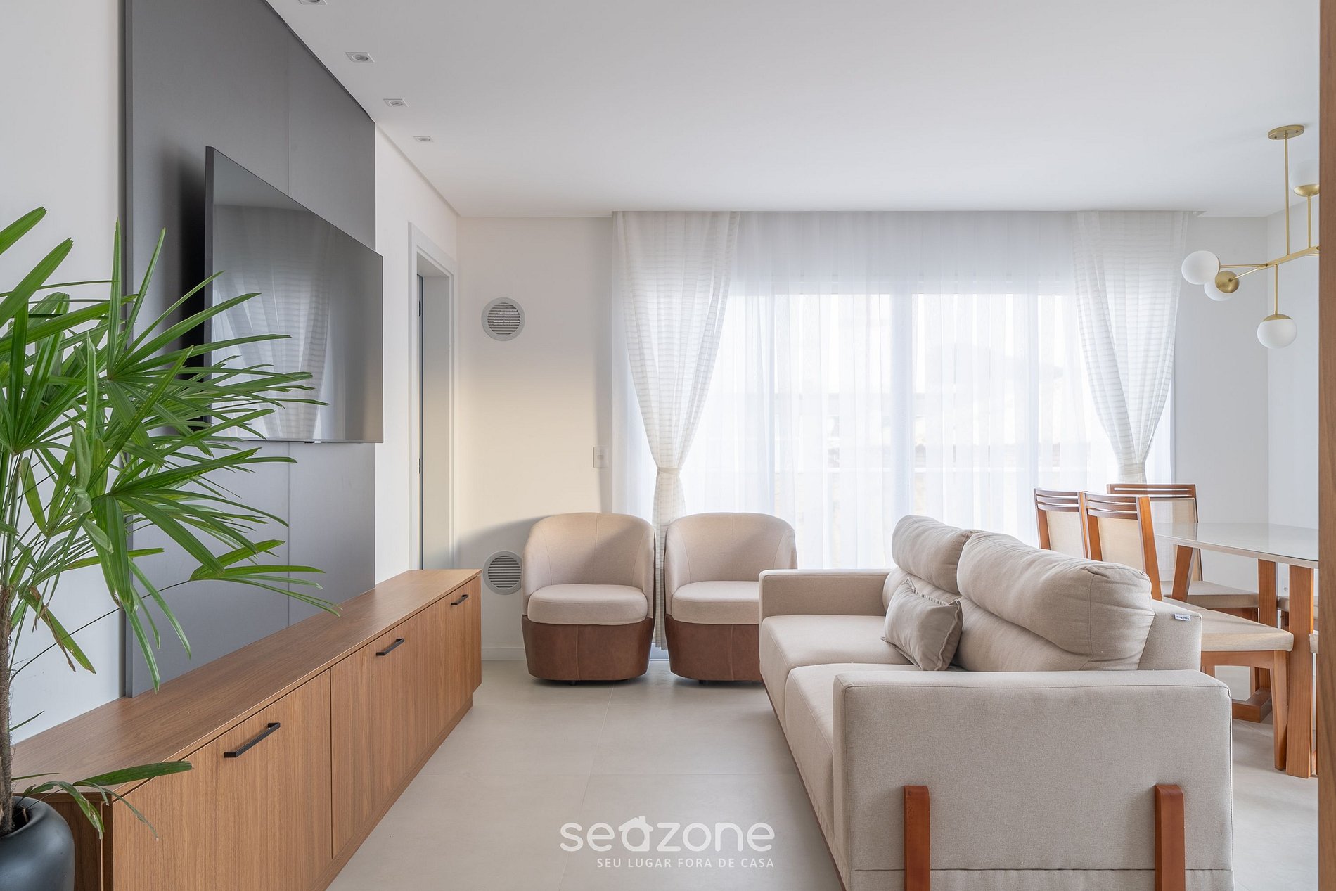 - Roupas de cama/banho e limpeza extras são solicitadas e pagas à parte, direto com a Seazone;
