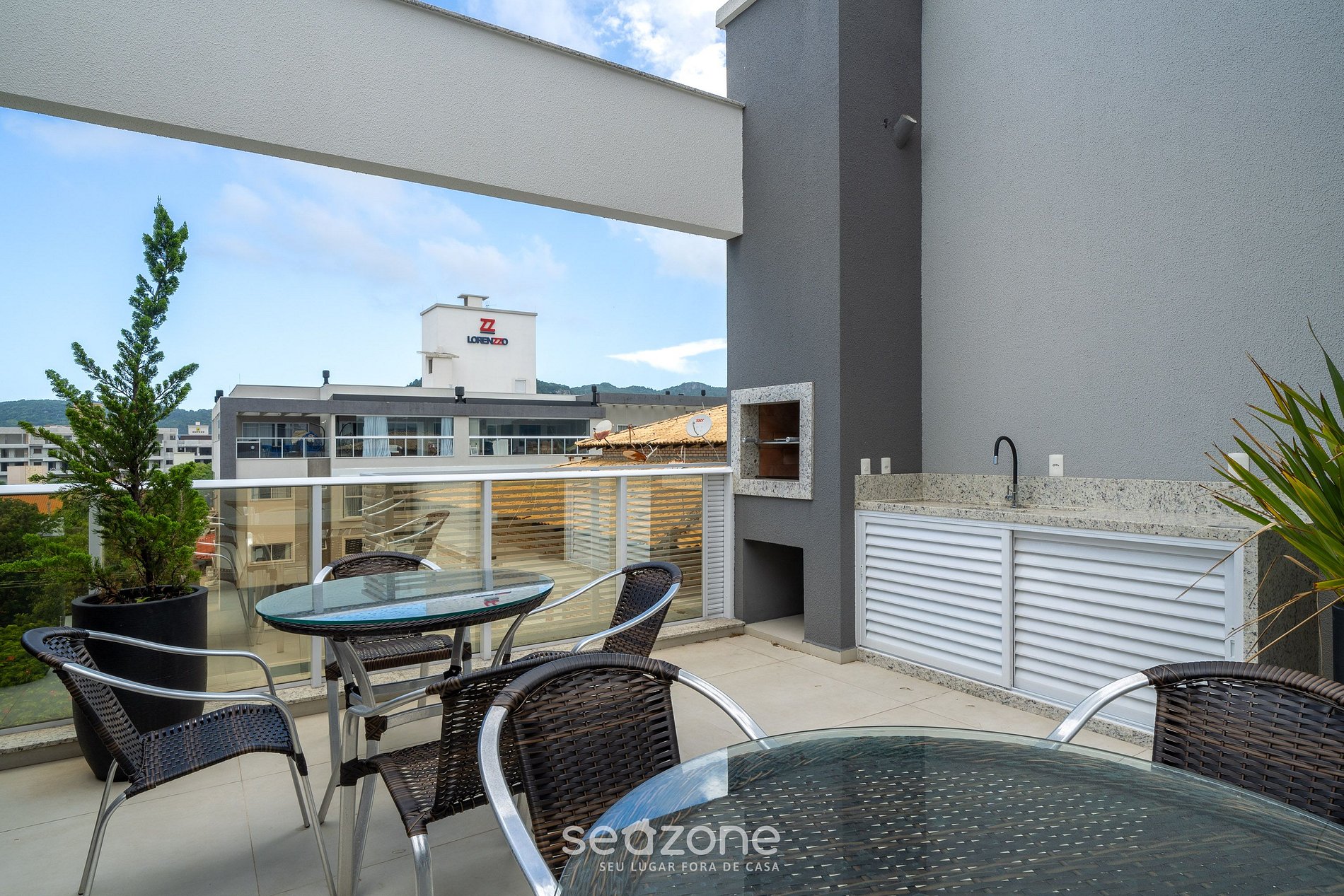 - Ampla sacada na sala de estar com churrasqueira e móveis externos;