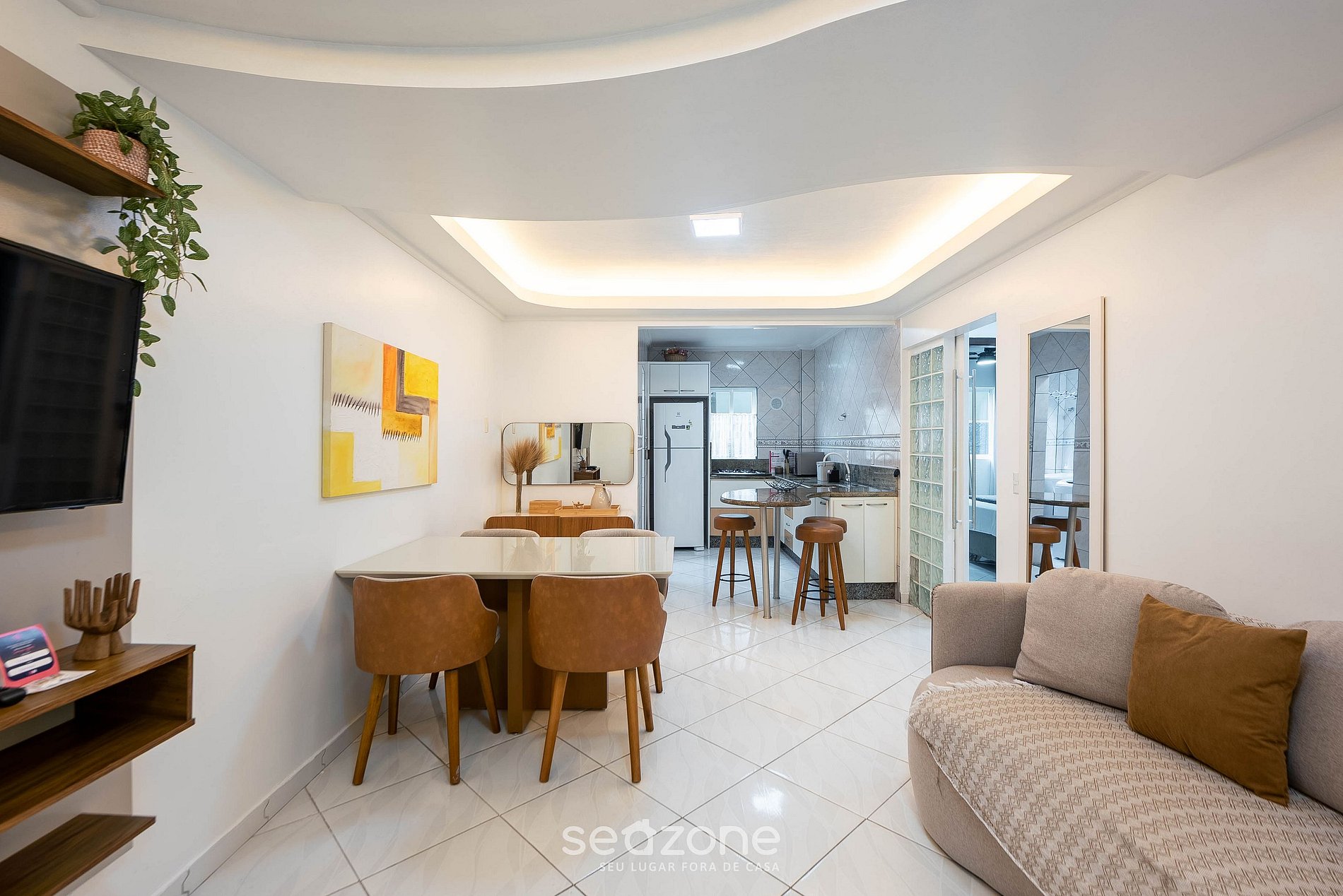 - Sala de estar com Sofá e Smart TV;