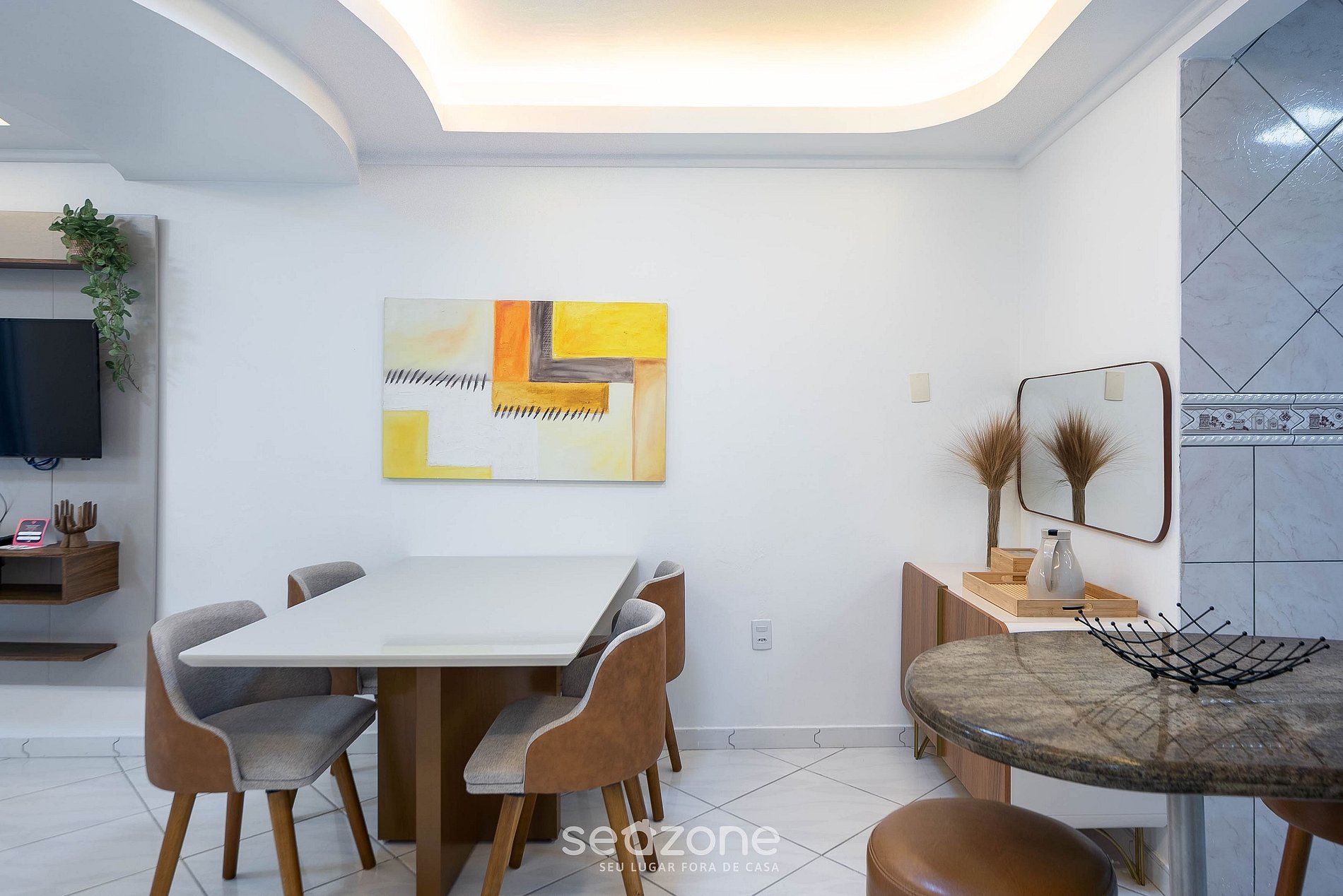 - Espaço para jantar com mesa e 4 cadeiras;