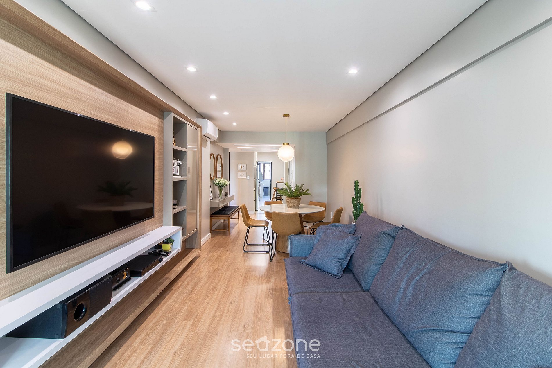 - Sala de estar com Sofá, ar-condicionado e Smart TV;